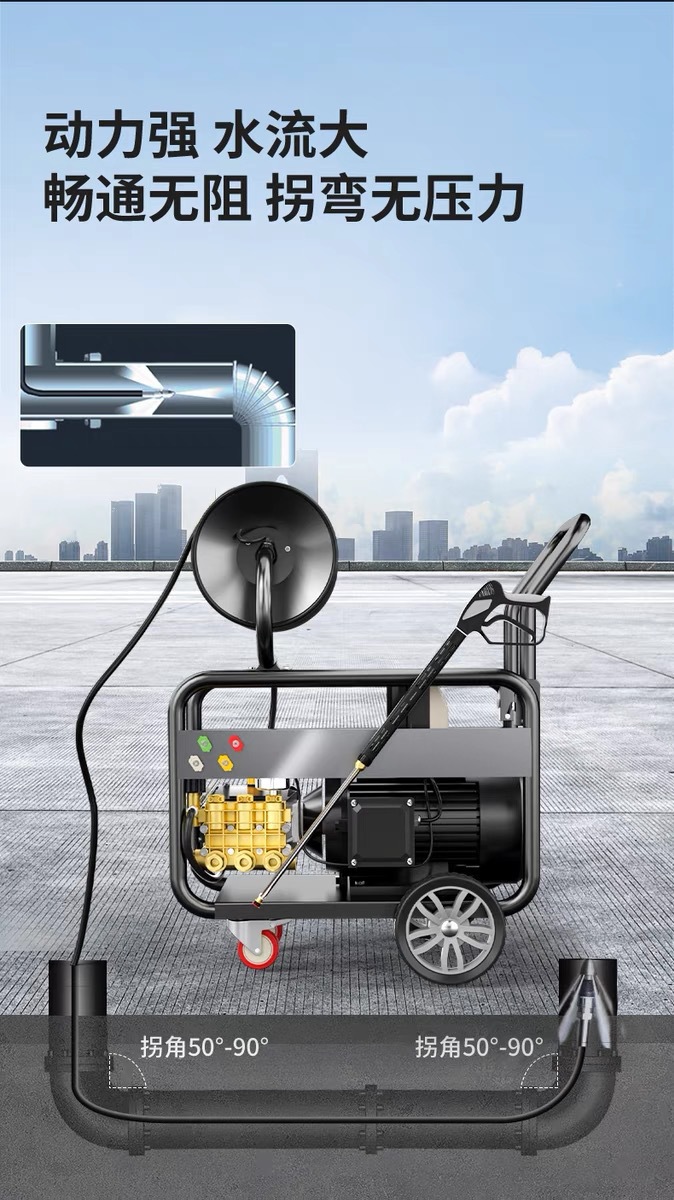 Yangzi 220В Высоконапорная машина для прочистки труб, дизельная, бензиновая, электрическая, высокомощная, промышленная очистка канализации