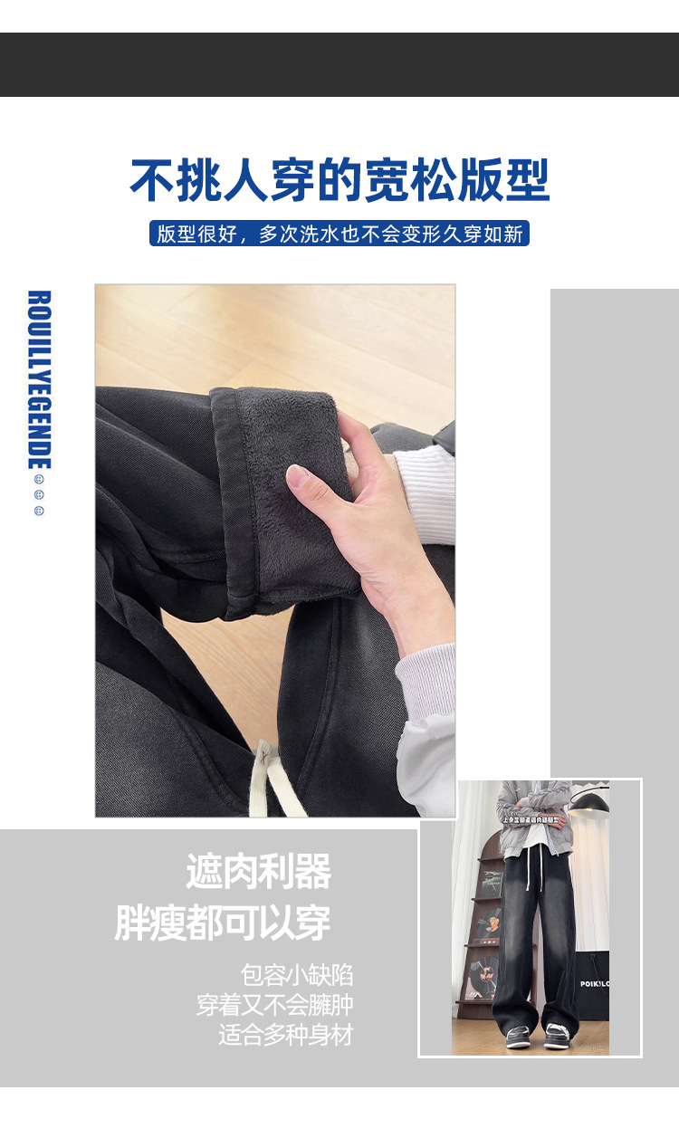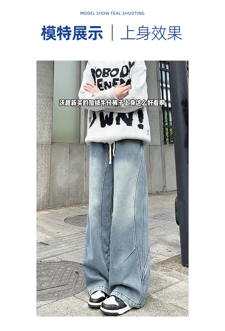 Осенние и зимние велюровые утолщенные джинсы для мужчин и женщин, американский сплошной дизайн прямые брюки, свободные большие размеры повседневные брюки