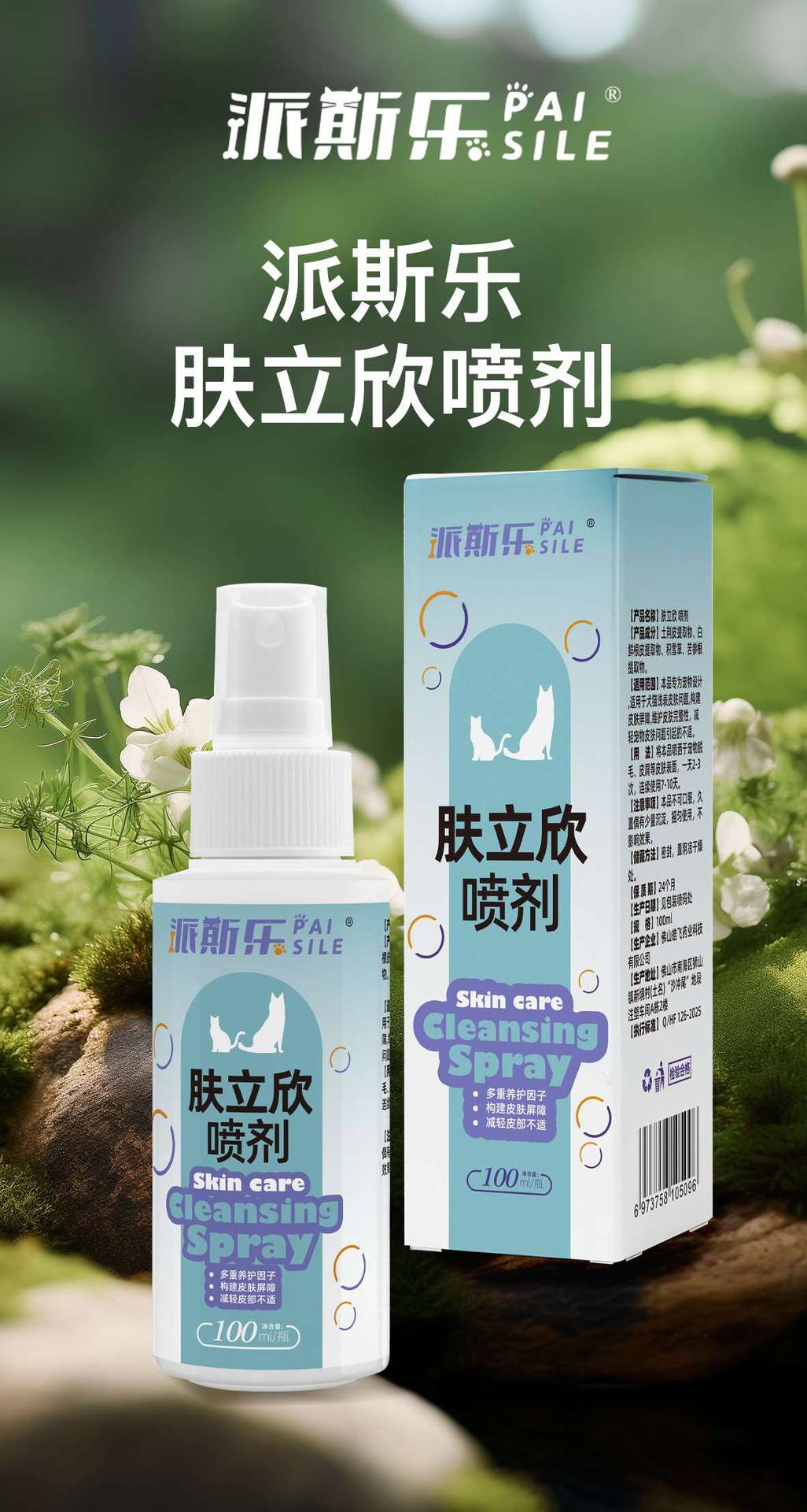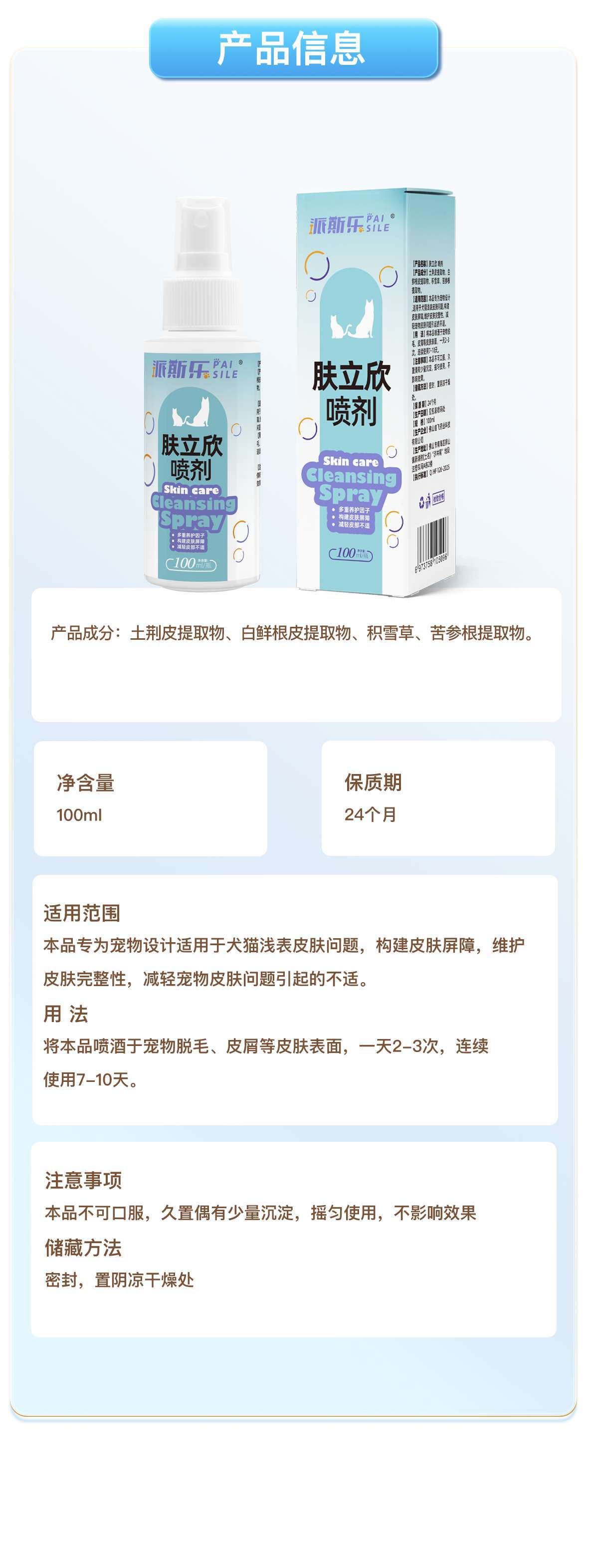 Спрей Paisle Skin Lixin для очистки кожи животных, нейтральный для кошек и собак 100 мл/бут.