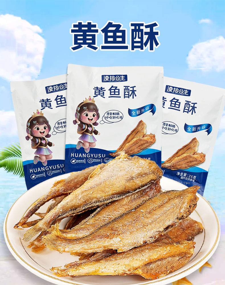 Хрустящий желтый морской окунь от Принцессы Линг Ши, хрустящая сушеная мелкая рыба, готовые к употреблению морепродукты, рыбные высокобелковые закуски