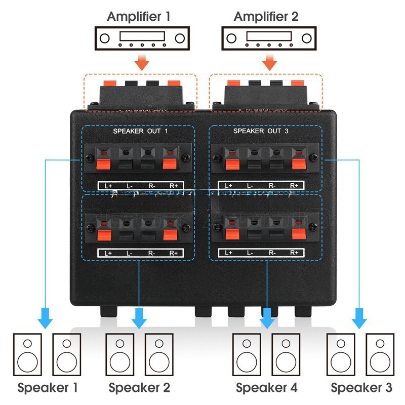 Аудиопереключатель 2-в-4 для динамиков контроллер селектор усилитель для домашнего использования (банановый разъем) Leidezhu