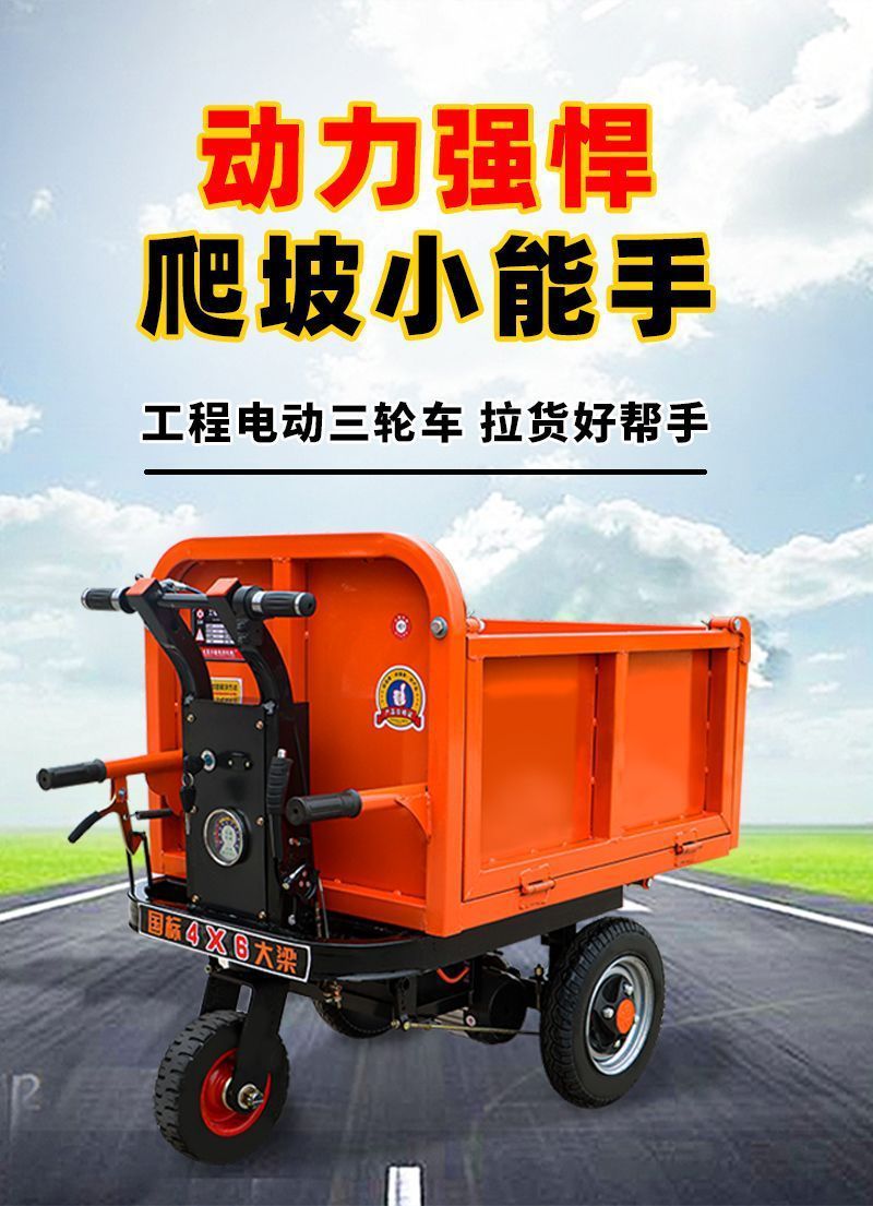 Электрическая тачка для строительного участка, серая самосвальная машина для стройки, используется для перевозки цемента, песка и кирпичей, трехколесное транспортное средство