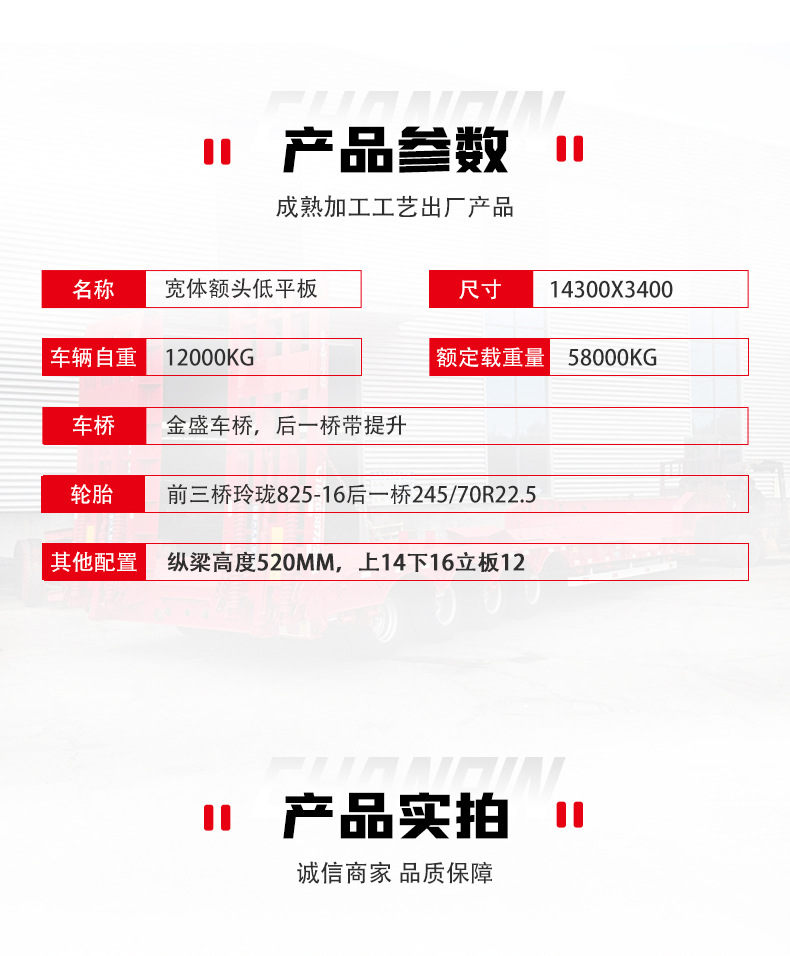 Готовая поставка на экспорт 14,3 м низкорамного полуприцепа с многими осями и гидравлической лестницей