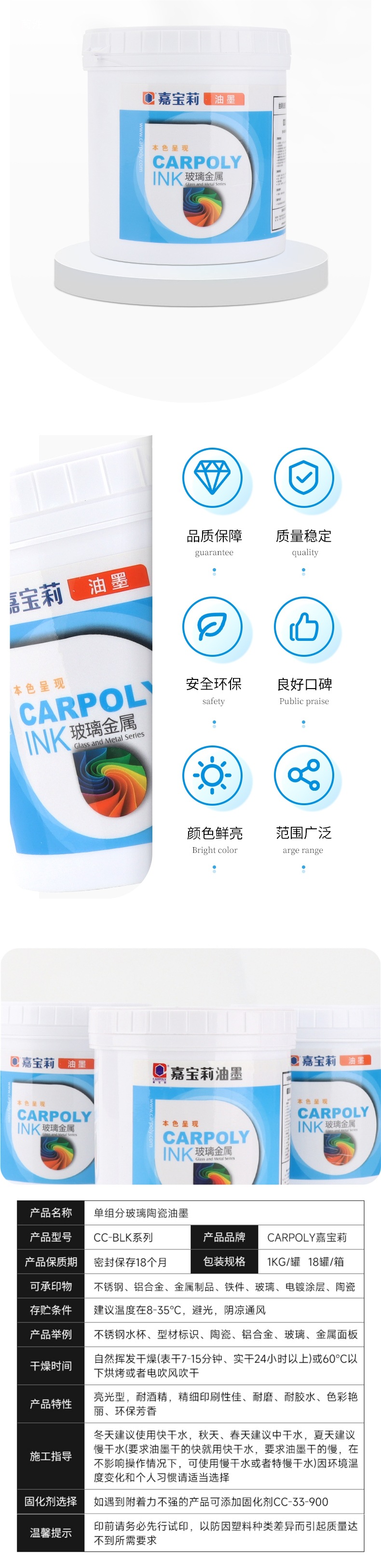 Металлическая краска Carpoly Cc-Blk для шелкографии, устойчивая к алкоголю, средней скорости самосохнущая, однокомпонентная