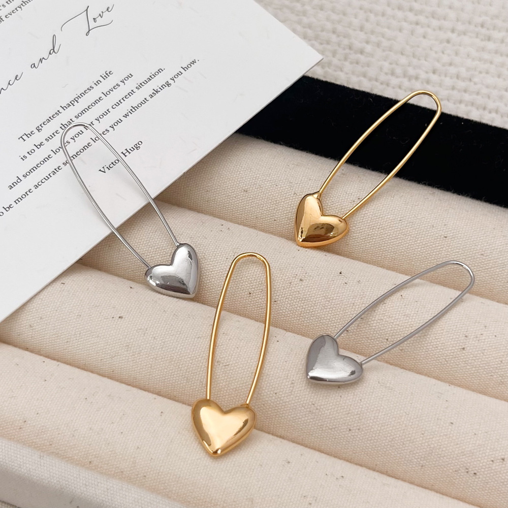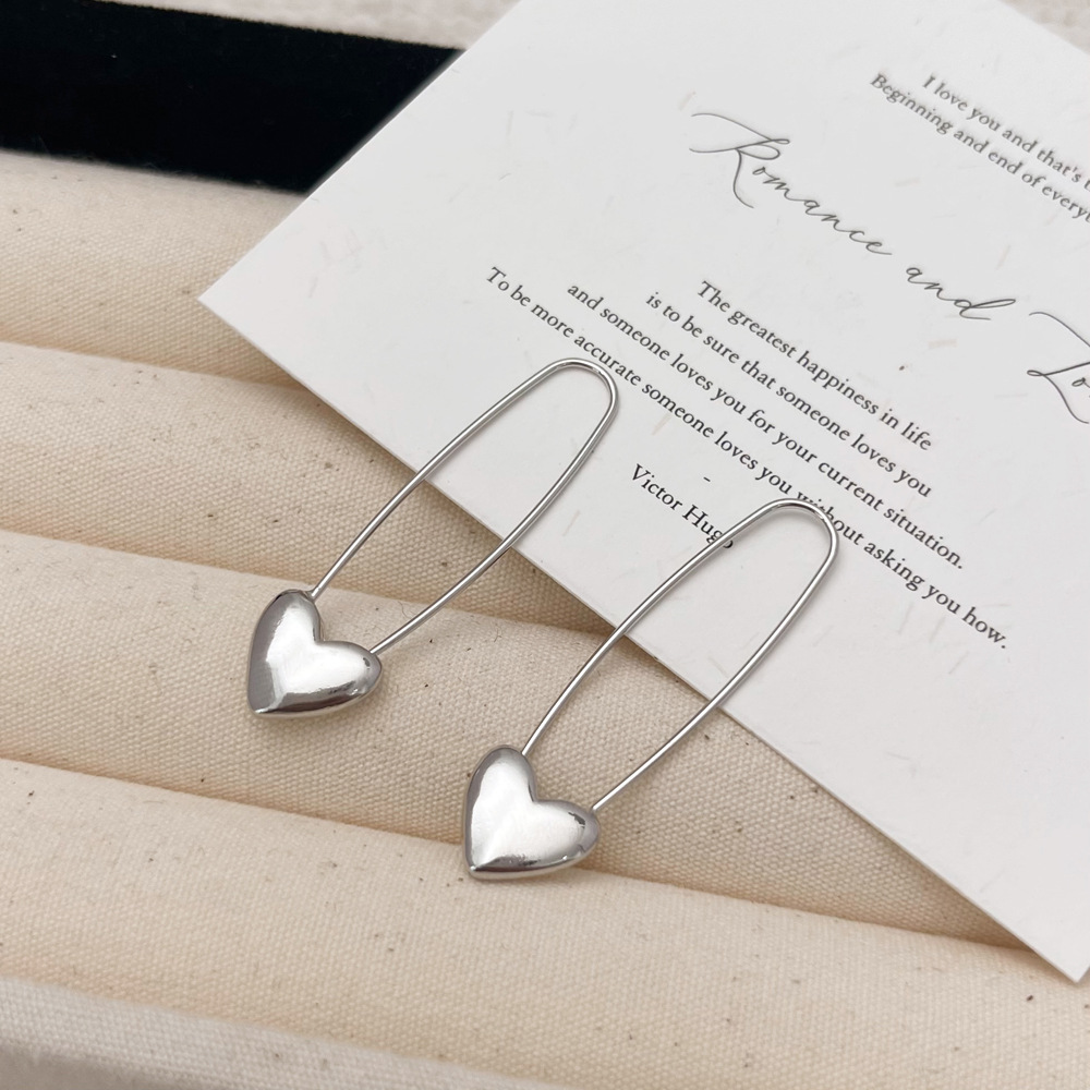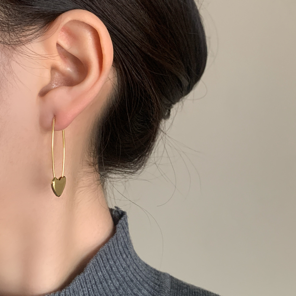 Французские металлические геометрические сердечные серьги, нишевый высококлассный простой элегантный ювелирный дизайн из Южной Кореи, район Донгдаэмун