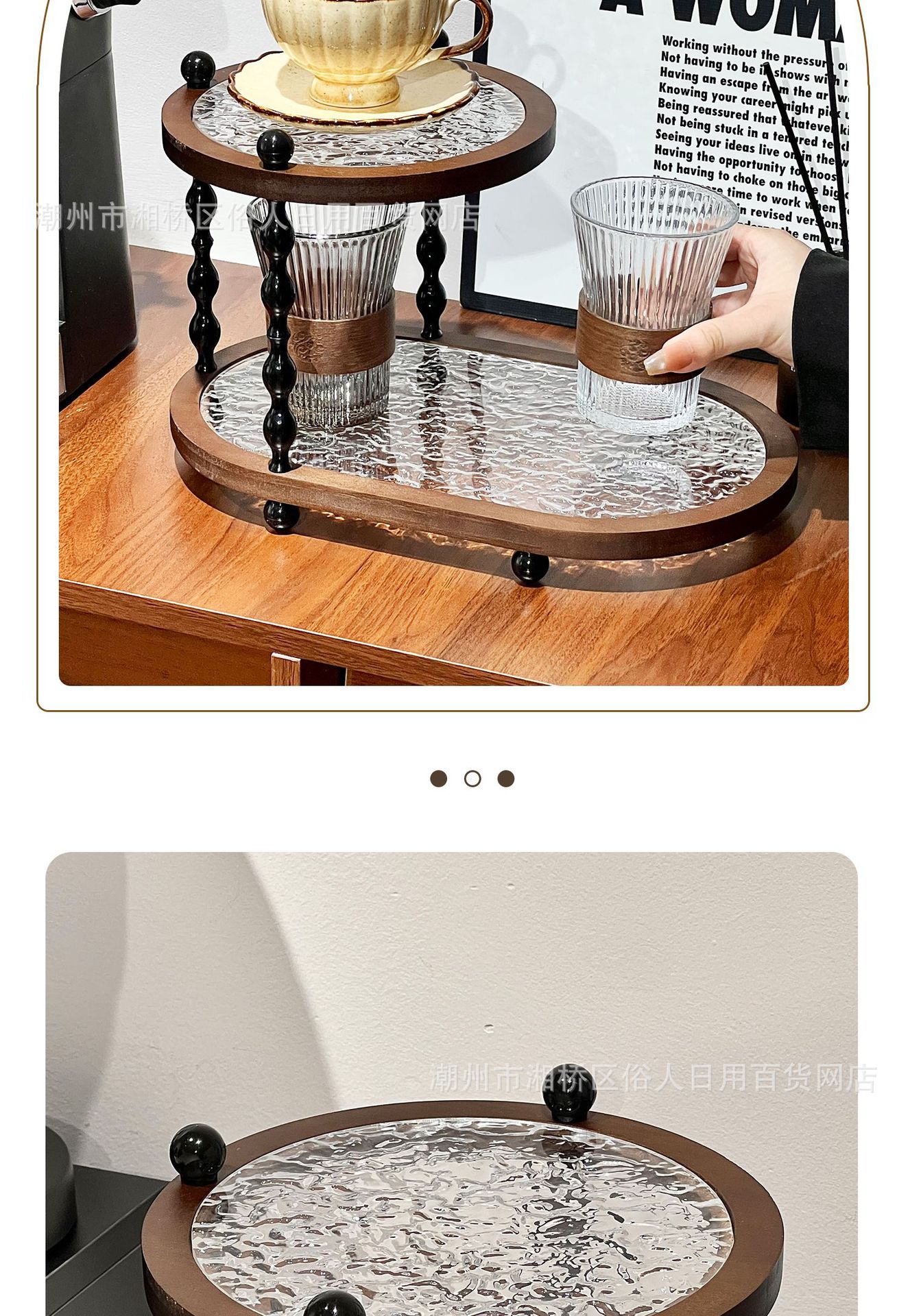 Настольная чаша в средневековом стиле, двухслойная полка из массива дерева, высококачественное легкое роскошное хранение для кухни, особенно красивое хранение для прихожей