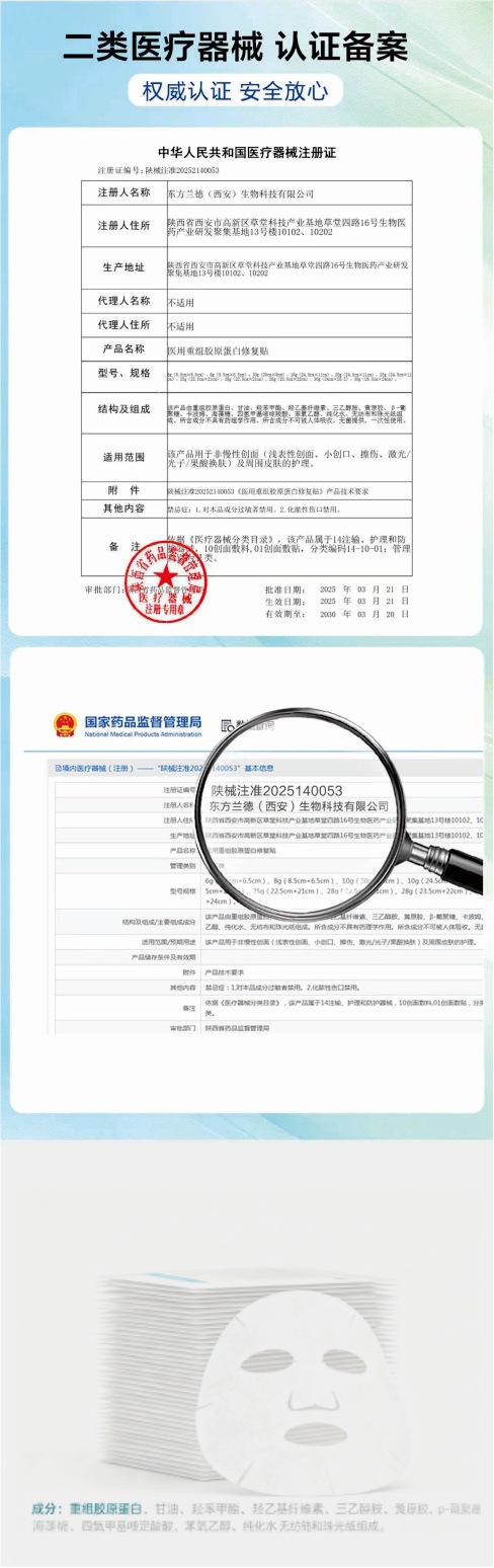 Медицинский рекомбинантный коллаген с эктоином и тетрагидроксиметилпиримидинкарбоновой кислотой для послеоперационного использования, OEM для медицинских косметологических клиник