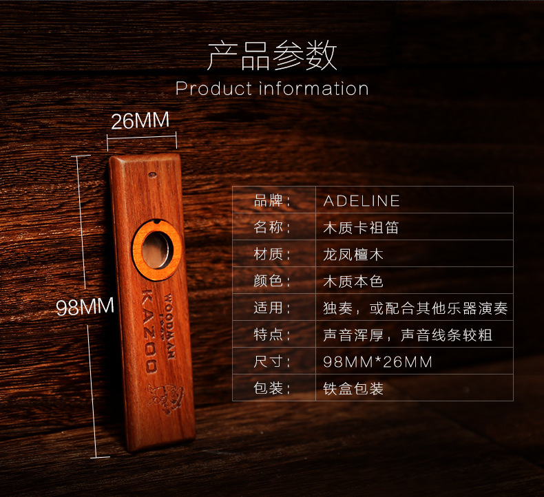 Кросс-бодер Адалина, деревянный казу, компаньон для гитары и укулеле, казу флейта, идет с пленкой для флейты, металлическая коробка