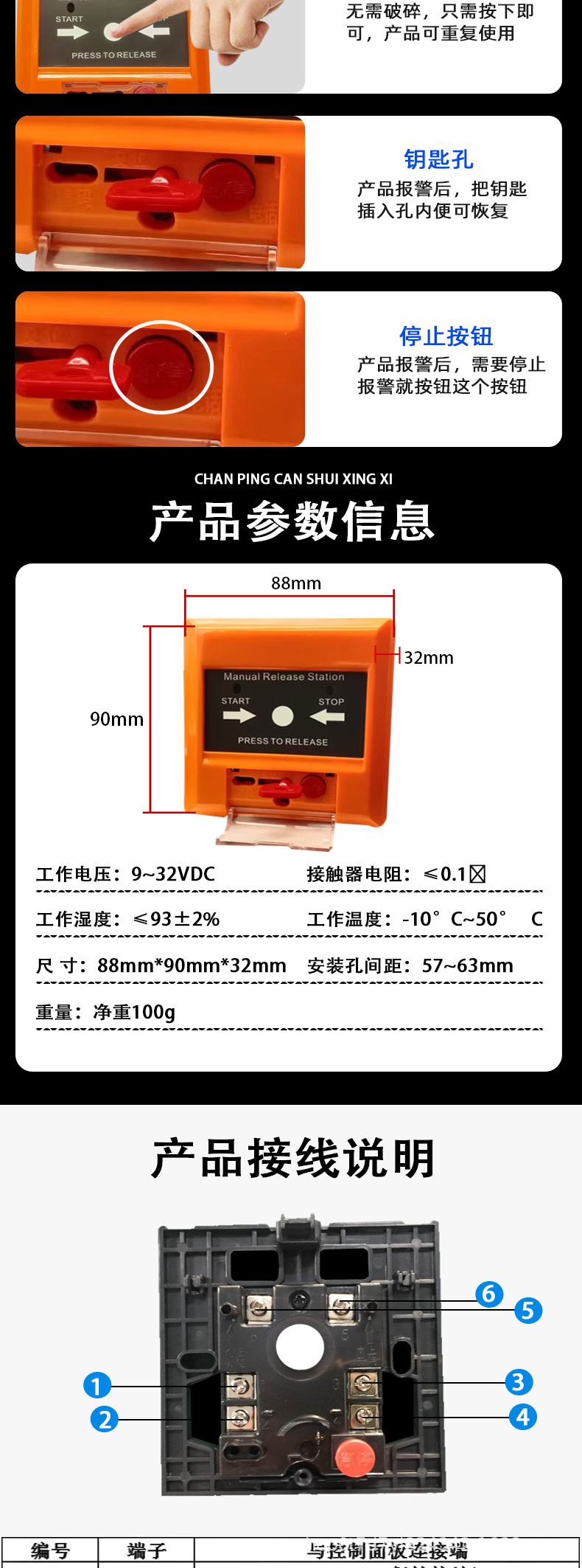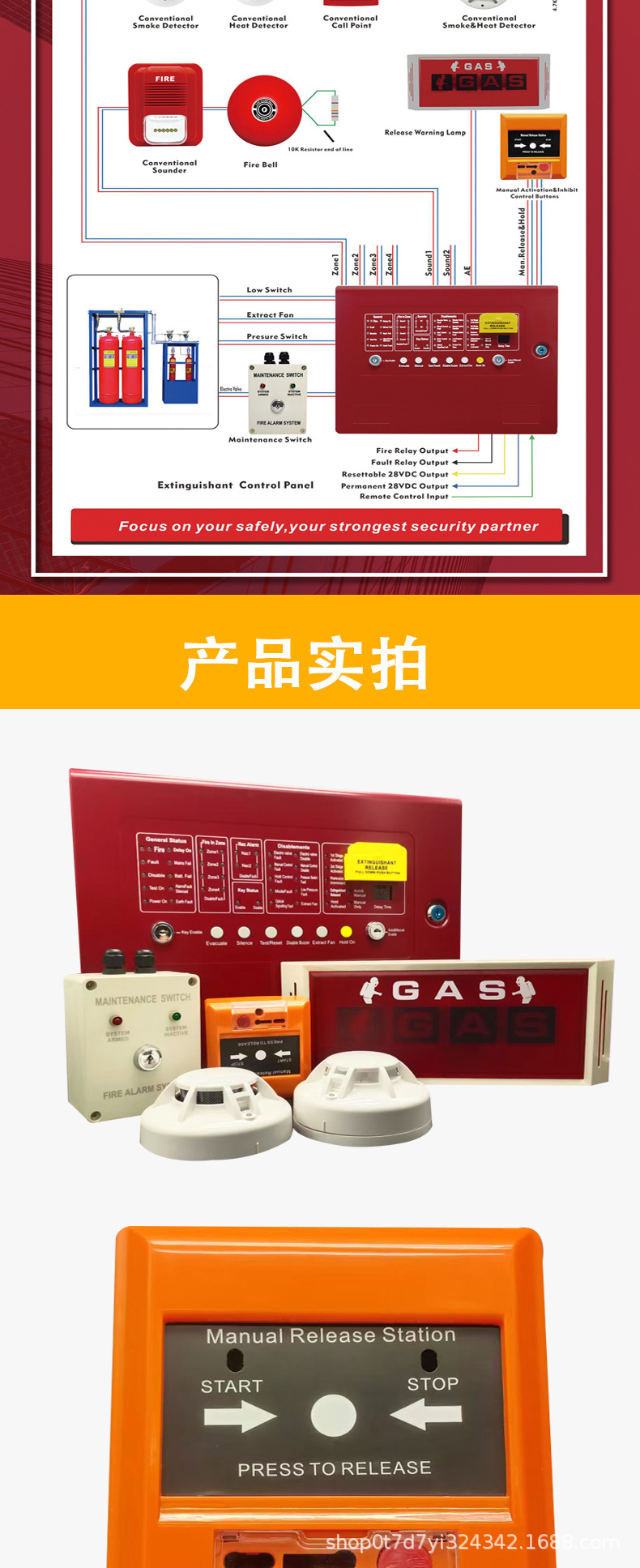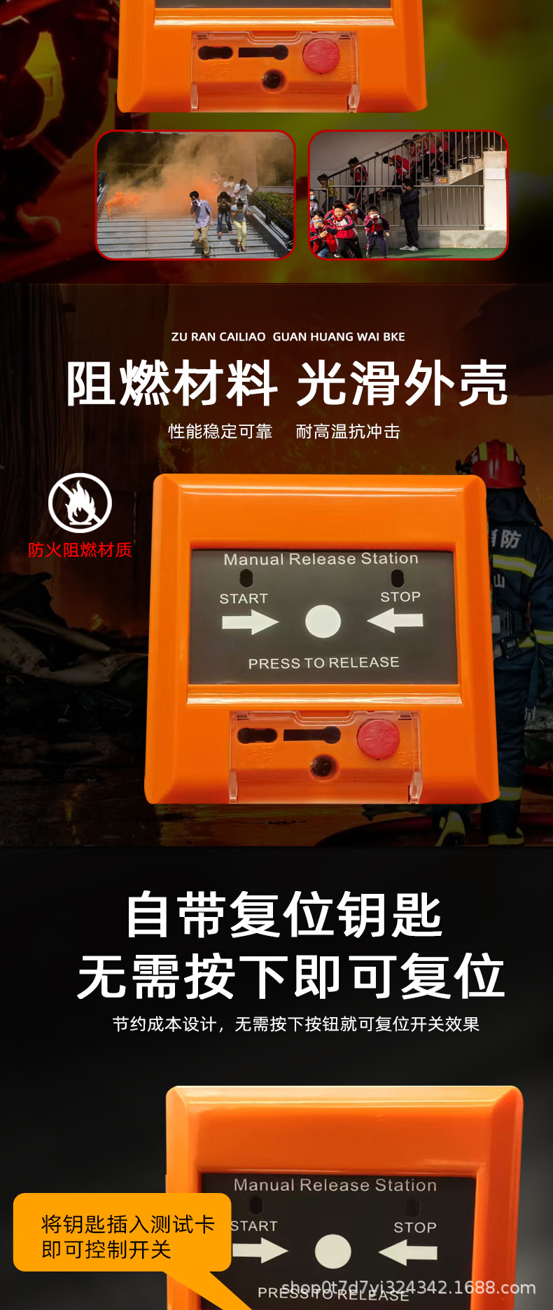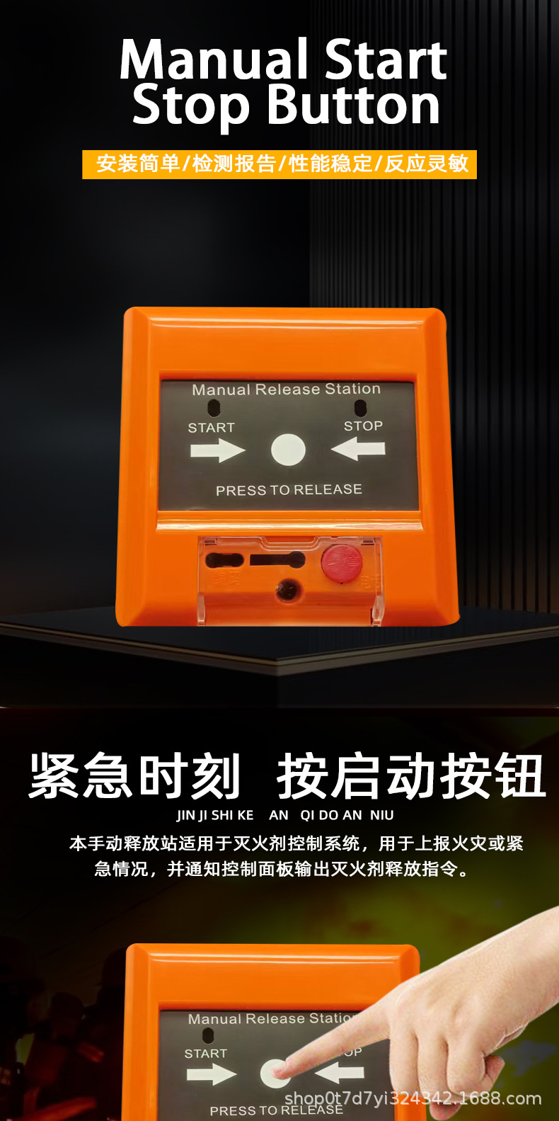 Кнопка запуска и остановки системы газового огнетушителя, английская версия