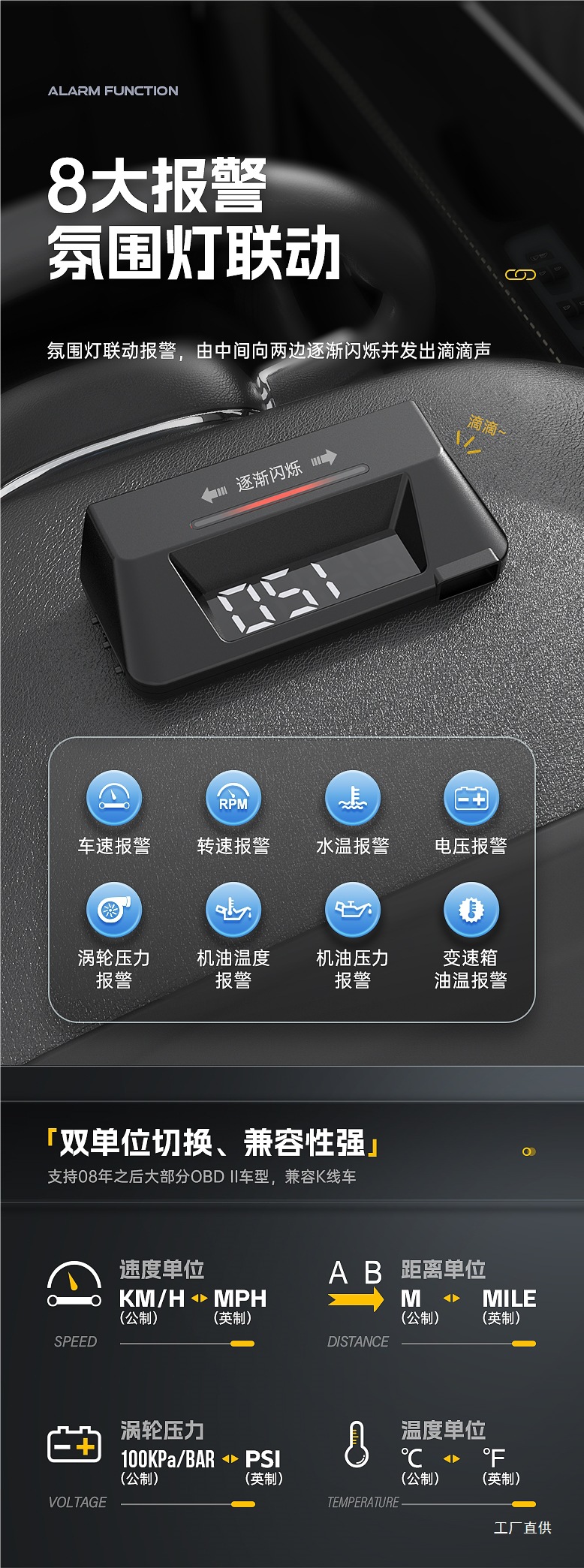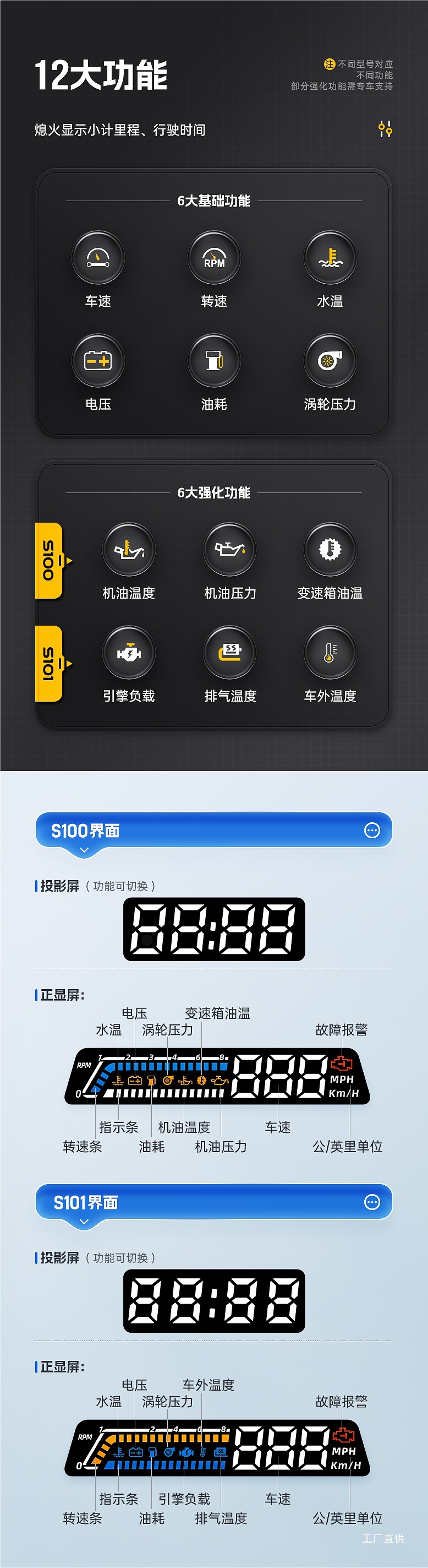 HUD дисплей OBD многофункциональный автомобильный инструмент температура масла температура трансмиссионного масла мониторинг двойного дисплея S100