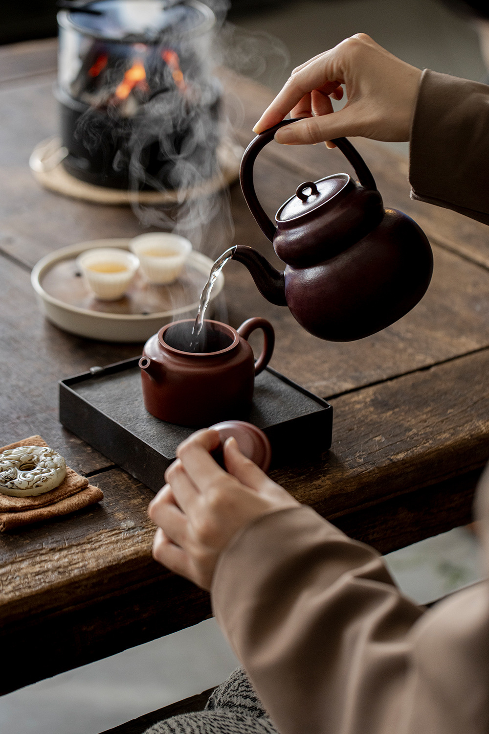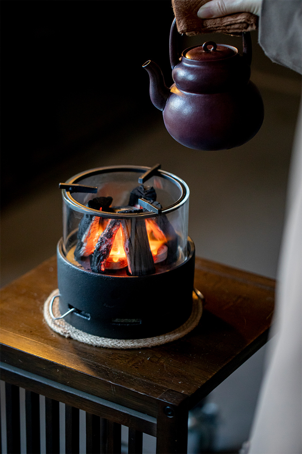 Набор чайника с угольной плитой в японском стиле для заваривания чая для использования на открытом воздухе и в помещении с открытым огнем