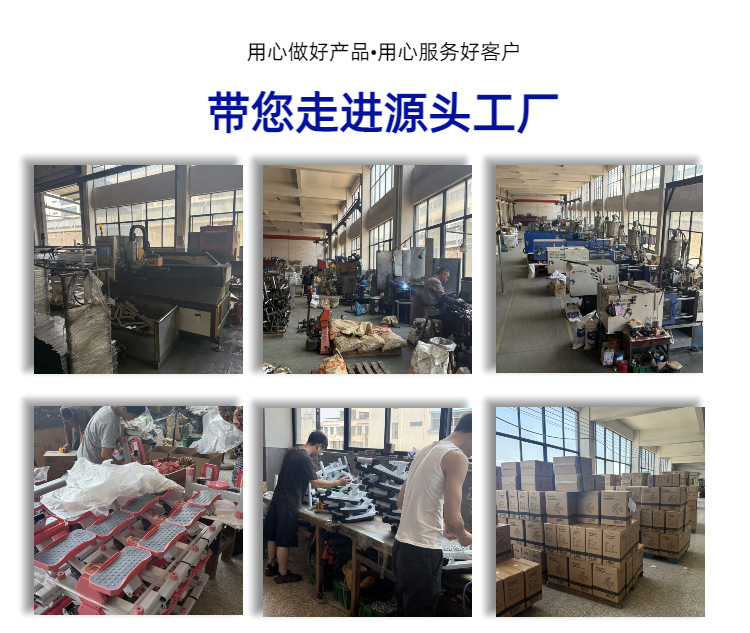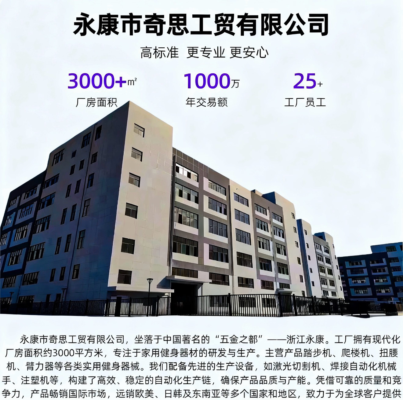 我们是一家专业生产高品质健身器材的现代化工厂,拥有激光切割机、焊接机器人和注塑机等先进设备,主营小型踏步机等家用健身产品。我们注重品质,从原材料到成品严格把控,确保产品耐用、安全且实用。工厂自有模具,支持LOGO和颜色定制,日产量达2000套,供货稳定。欢迎淘宝天猫、亚马逊、速卖通、Ebay、国际阿里等平台采购询单,期待与您合作,共创双赢!