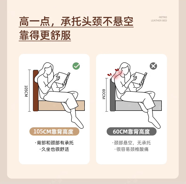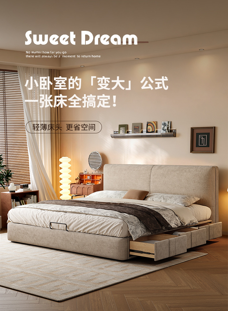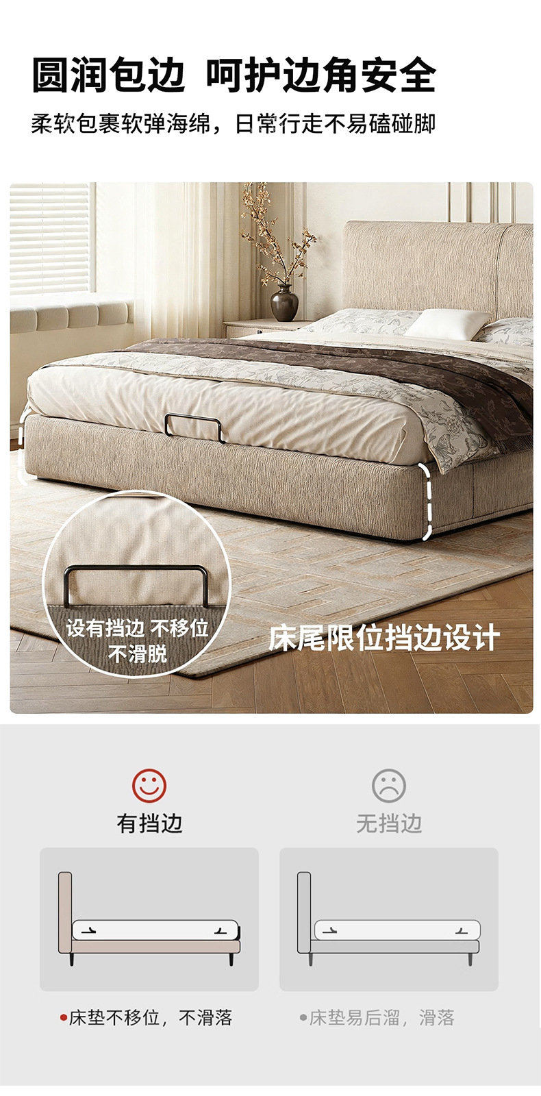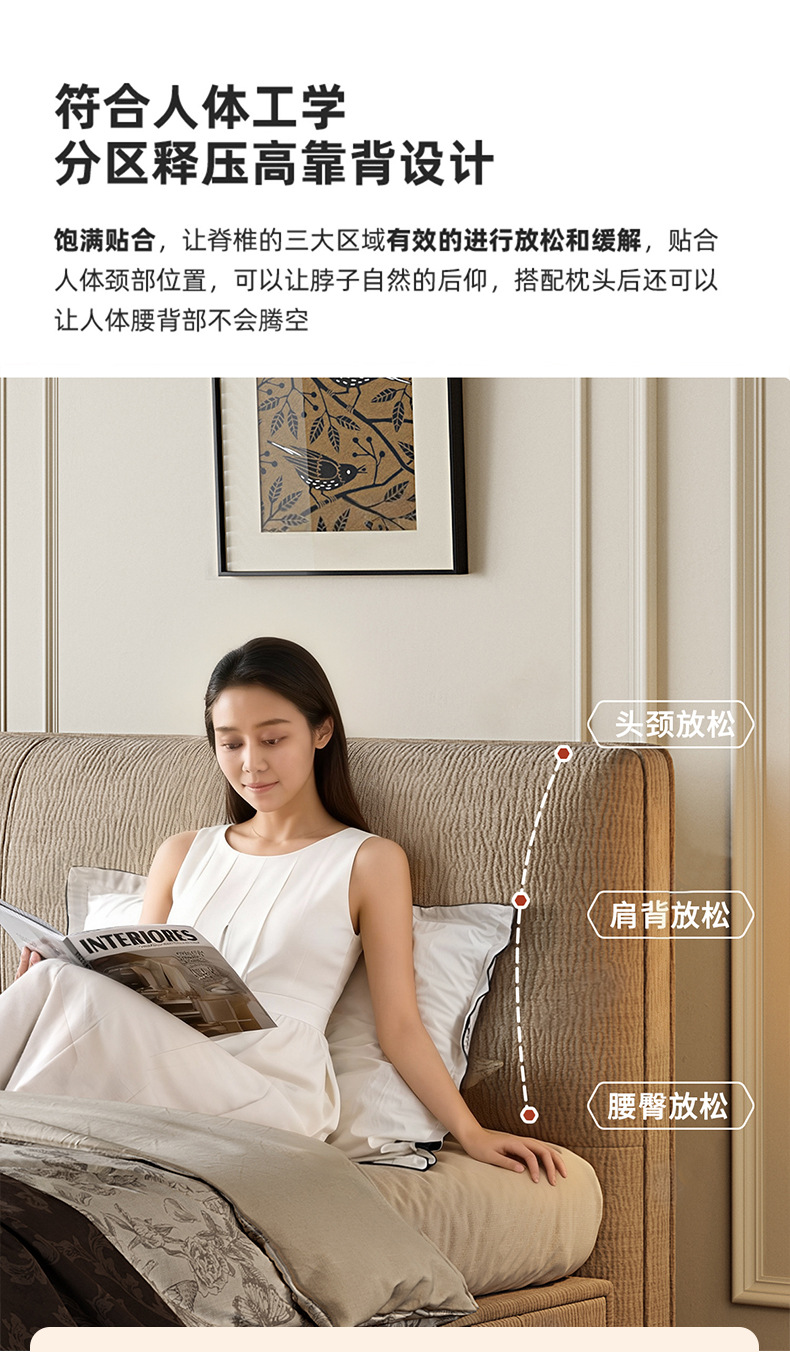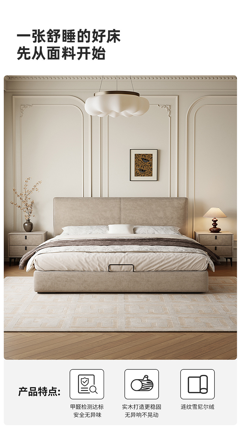 Кровать из ткани в кремовом стиле ретро для небольшой квартиры 1.8 м с мягким тонким изголовьем двуспальная свадебная кровать