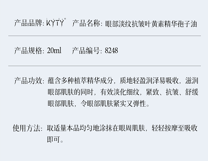 Название продукта Kyty eye lightening anti-wrinkle lutein essence spore oil