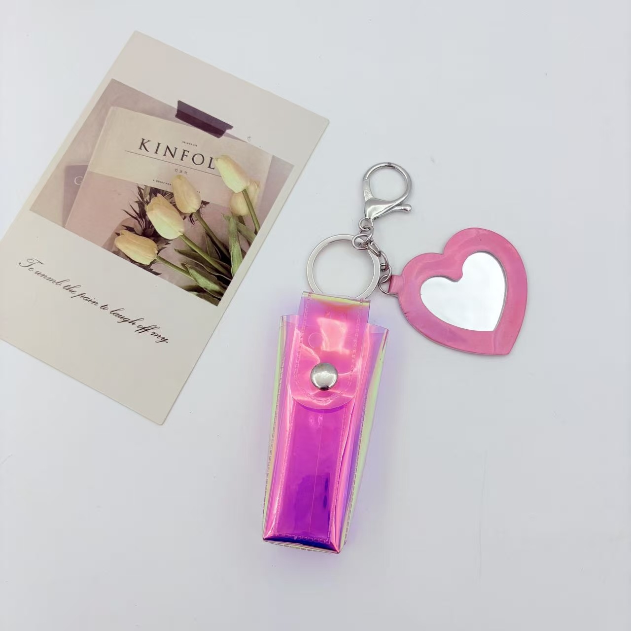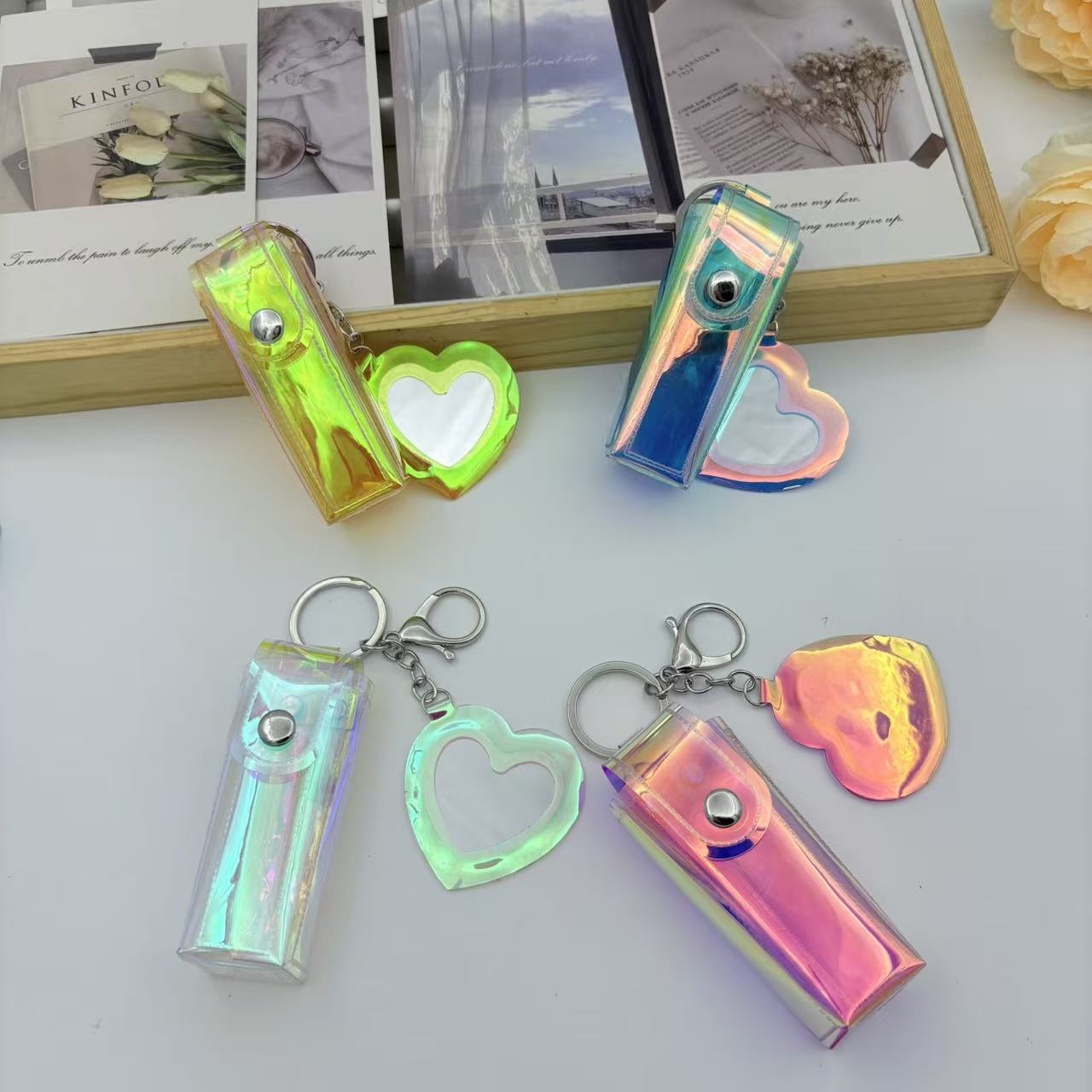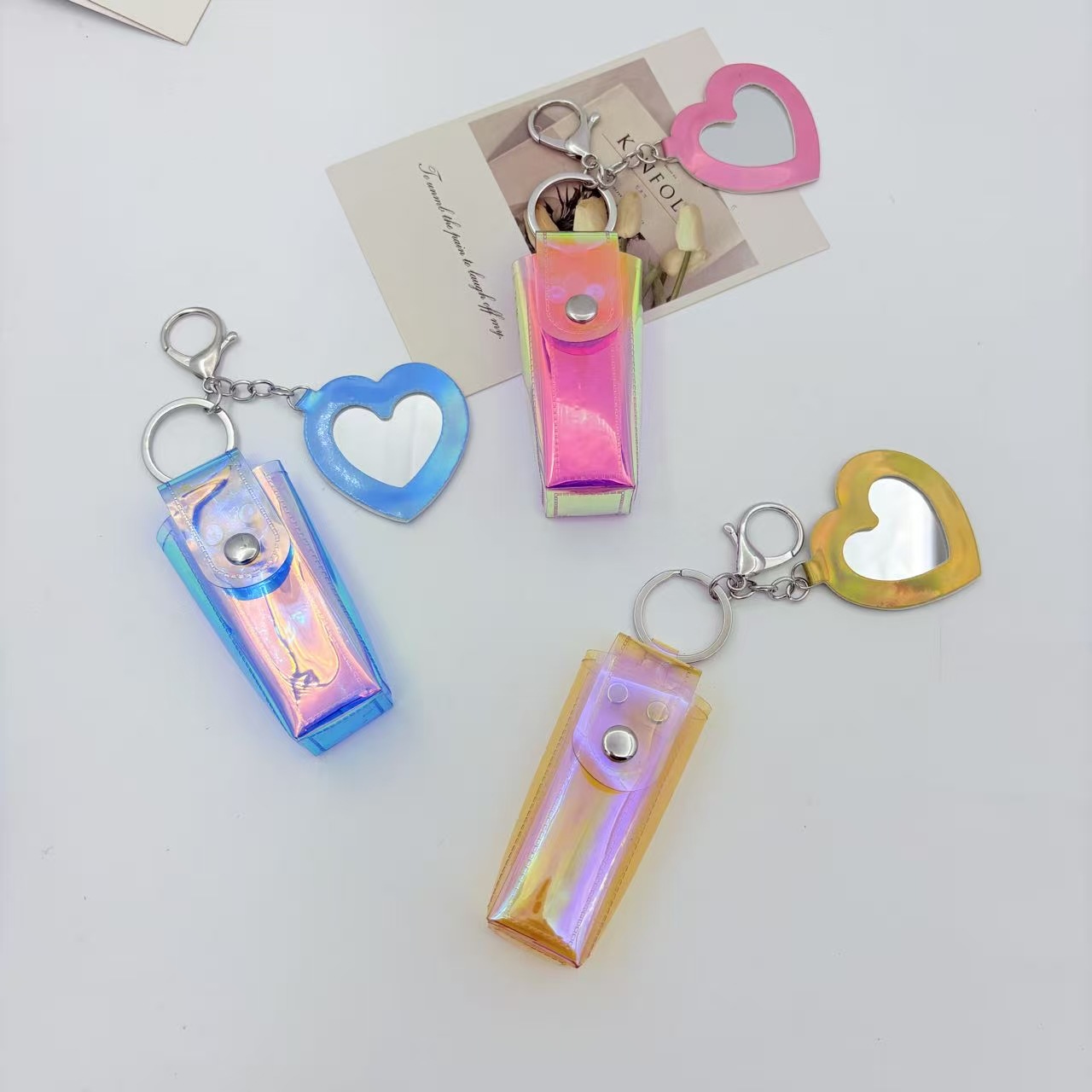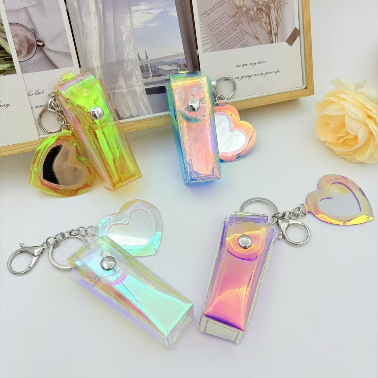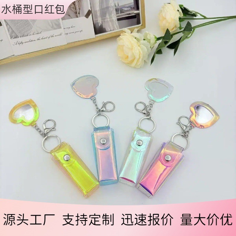 Милый брелок в виде сердечка из ПВХ, сумочка для хранения помады, креативный подвесной аксессуар