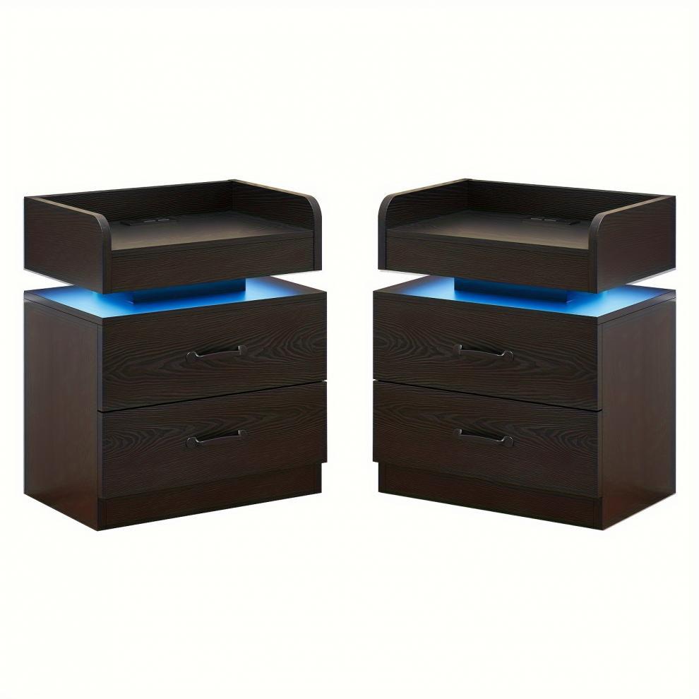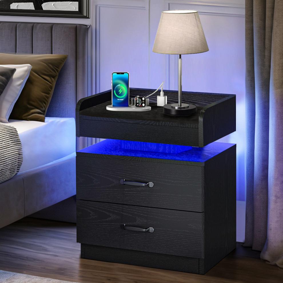 2026 Новый кросс-бордерный дропшиппинг современная черная деревянная тумбочка с зарядной станцией