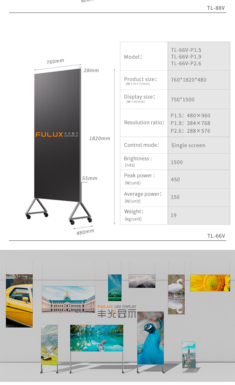 Тонкий вертикальный 88" бесшовный ландшафтный рекламный дисплей