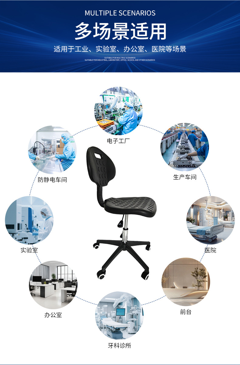 Антистатический стул для лабораторий с регулируемой высотой, стул с PU пеной для спинки, антистатический стул для сборочной линии