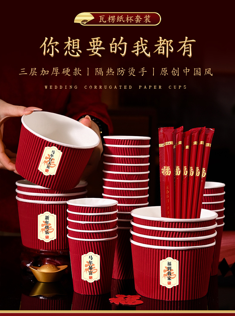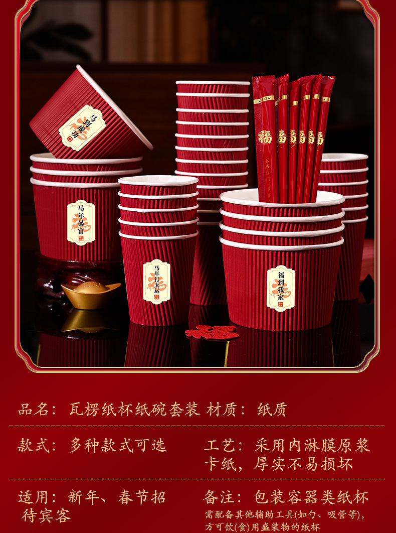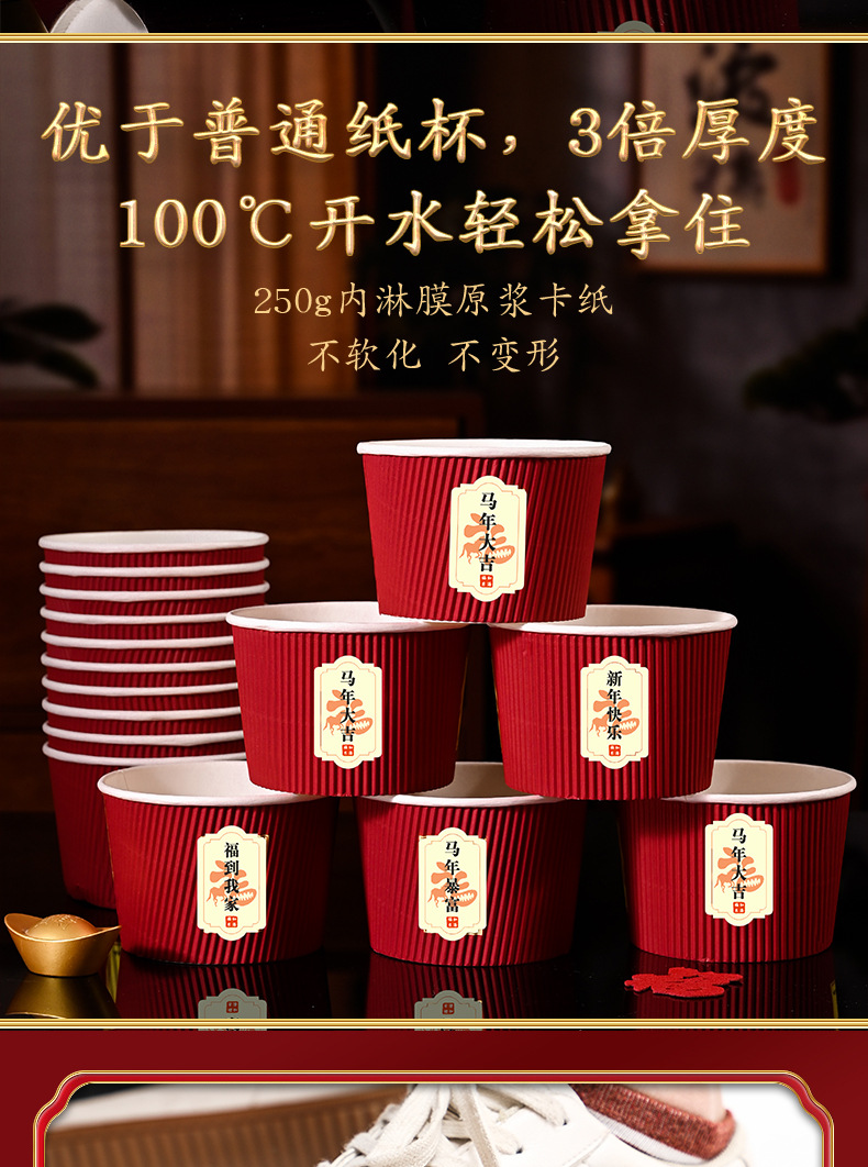 2026 год Лошади, удачливый персонаж, гофрированная бумажная миска, толстая одноразовая миска для новогоднего праздника