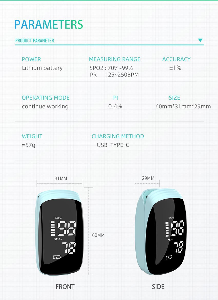 Перезаряжаемый оксиметр для пальца, мониторинг сердечного ритма и насыщения кислородом, медицинский класс, точный