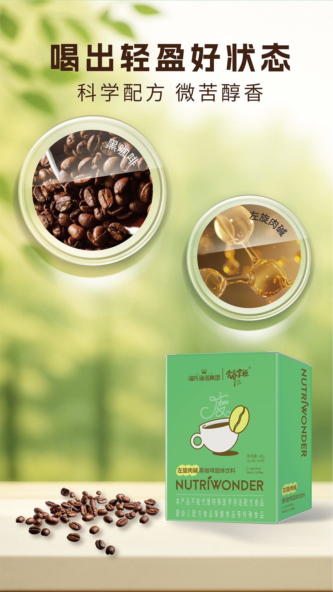 L-Карнитин Haishi Hainuo, черный кофе, низкожирный, мгновенный кофе для фитнеса