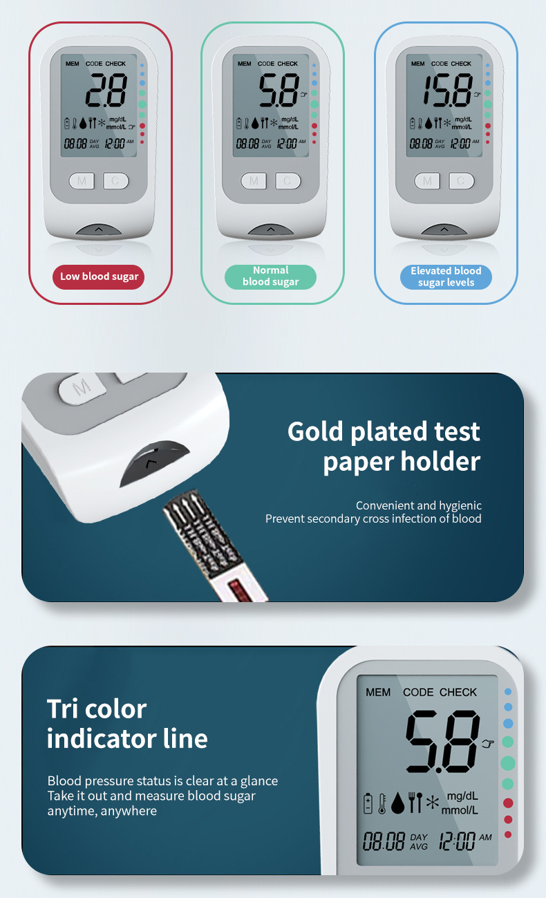 Иностранная Торговля Английский Домашний Полностью Автоматический Глюкометр и Тонометр Трехв-Одном Глюкометр Уровня Кислоты Мочевой Холестерина Кросс-Бордер