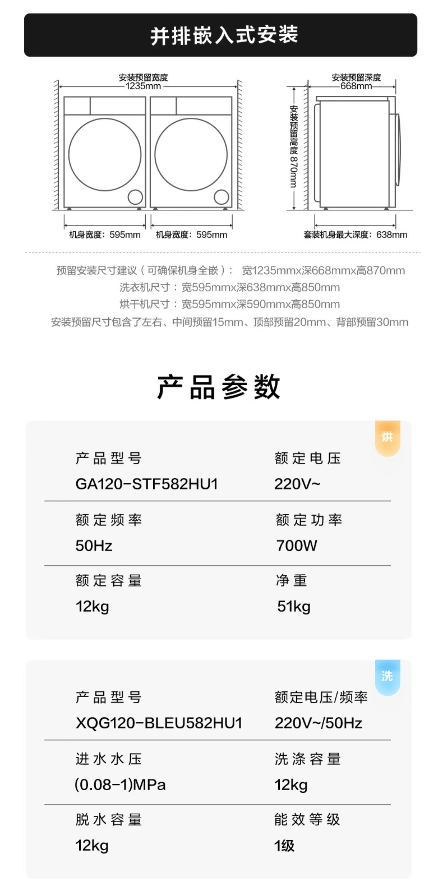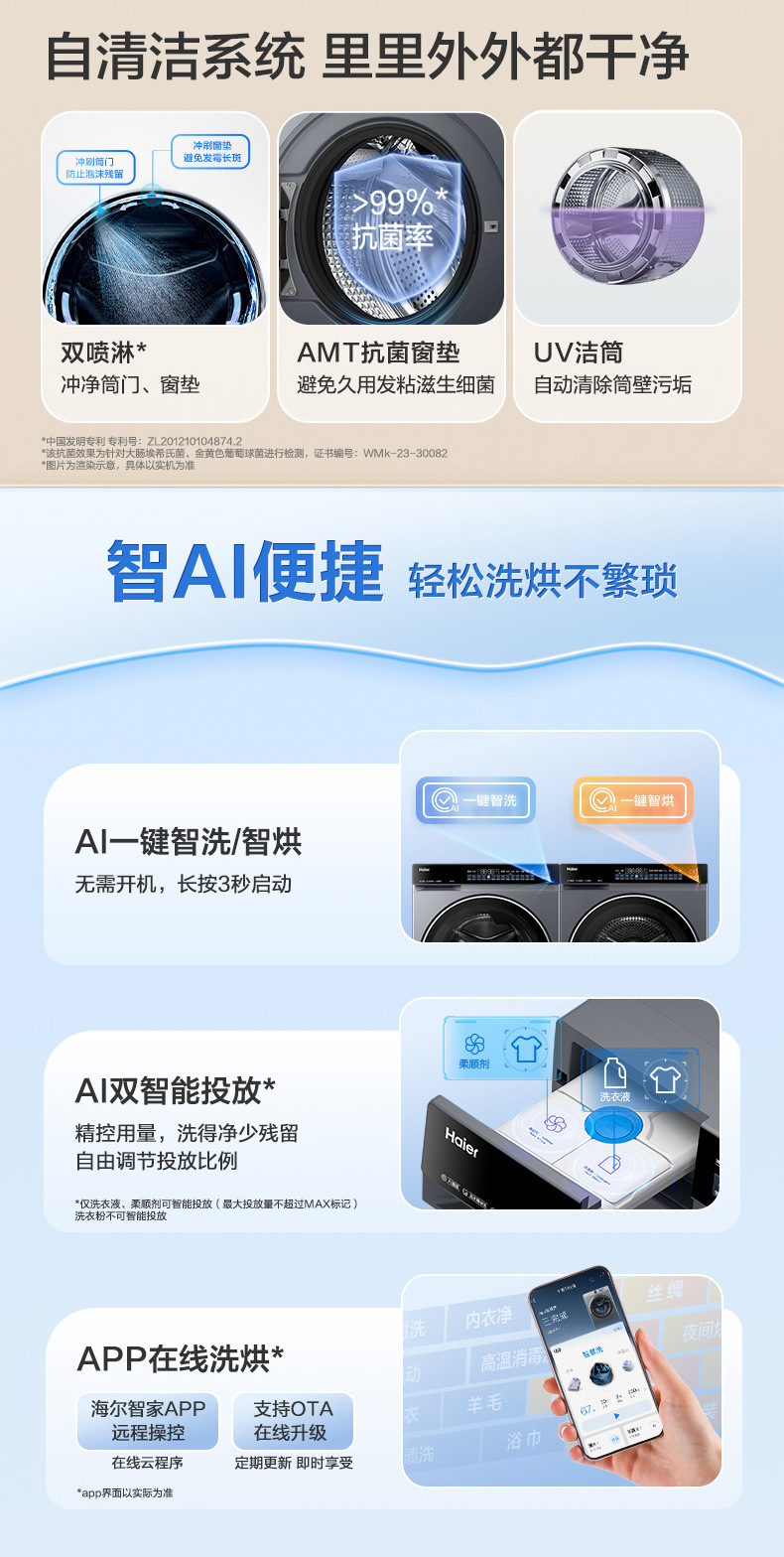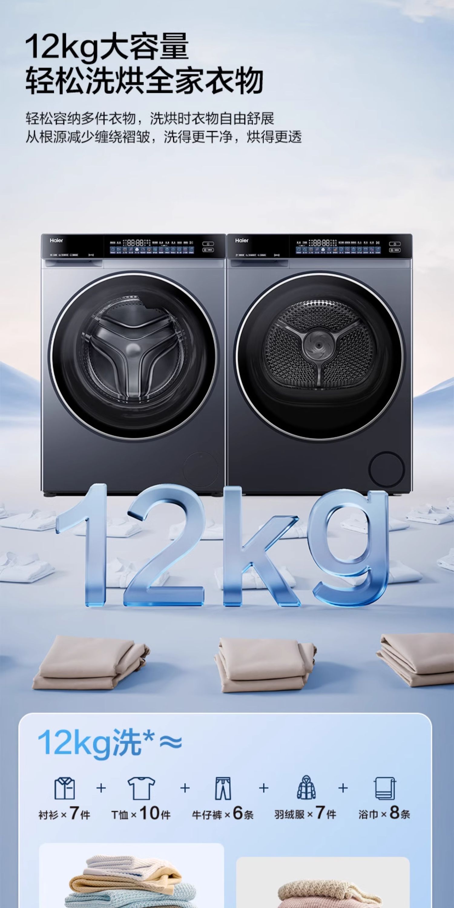 [Yunxi 4.0 12кг] Новый комплект стирки и сушки Haier Стиральная машина с прямым приводом и двойным двигателем 582