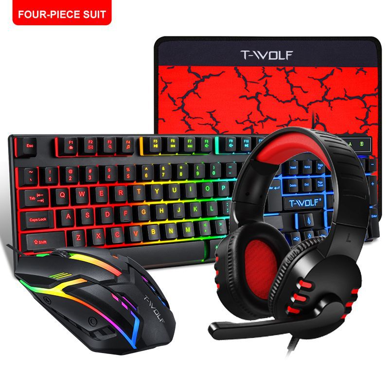Набор клавиатуры и мыши Twolf Thunder Wolf Tf800, 5/4 предмета, с подставкой и гарнитурой