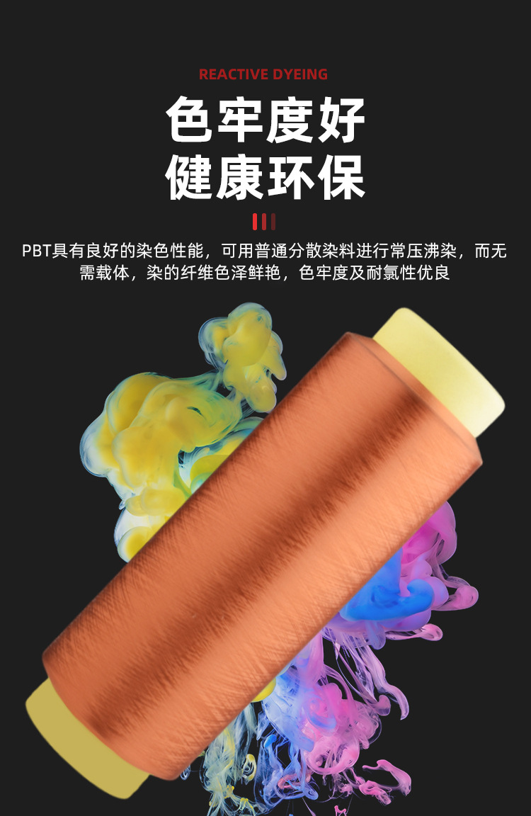 Безсетчатое высокоэластичное волокно Pbt, высокая эластичность, прочность, хорошая стойкость к образованию катышков, высокая светостойкость, поддержка кастомизации