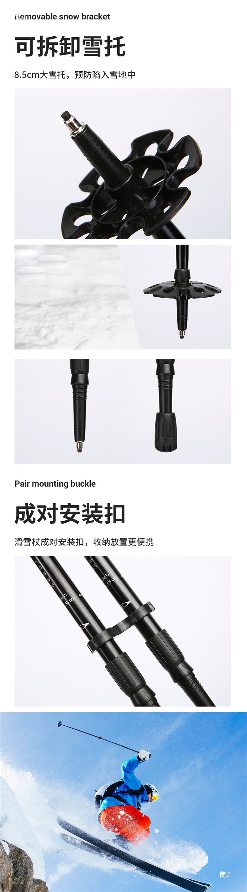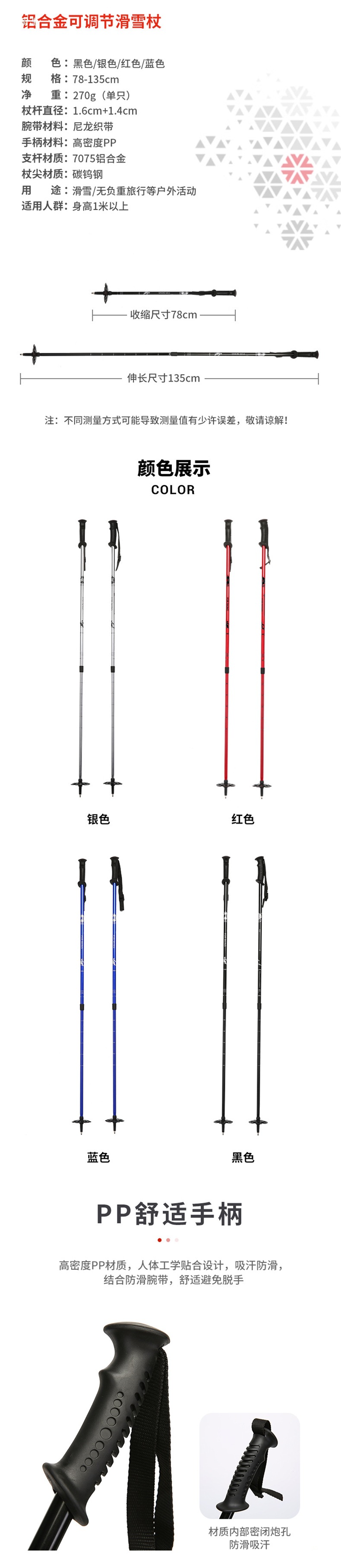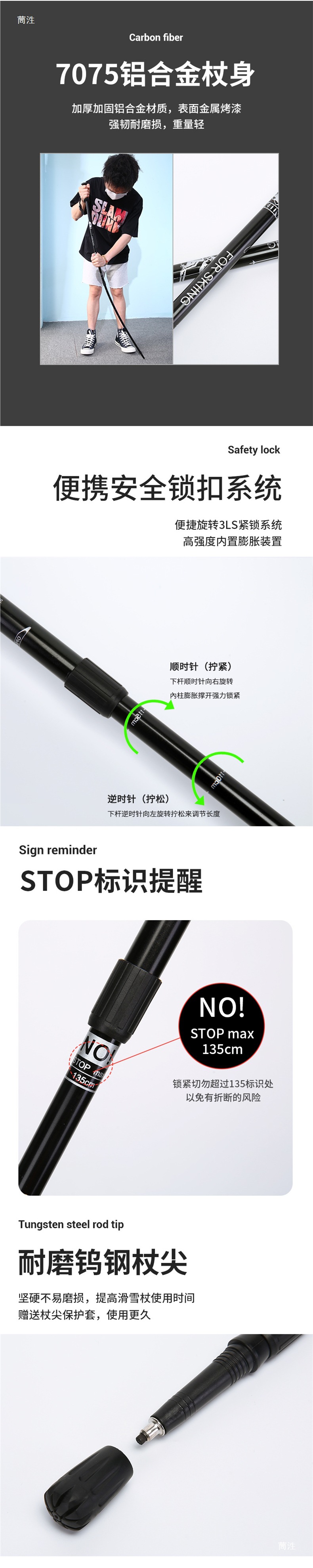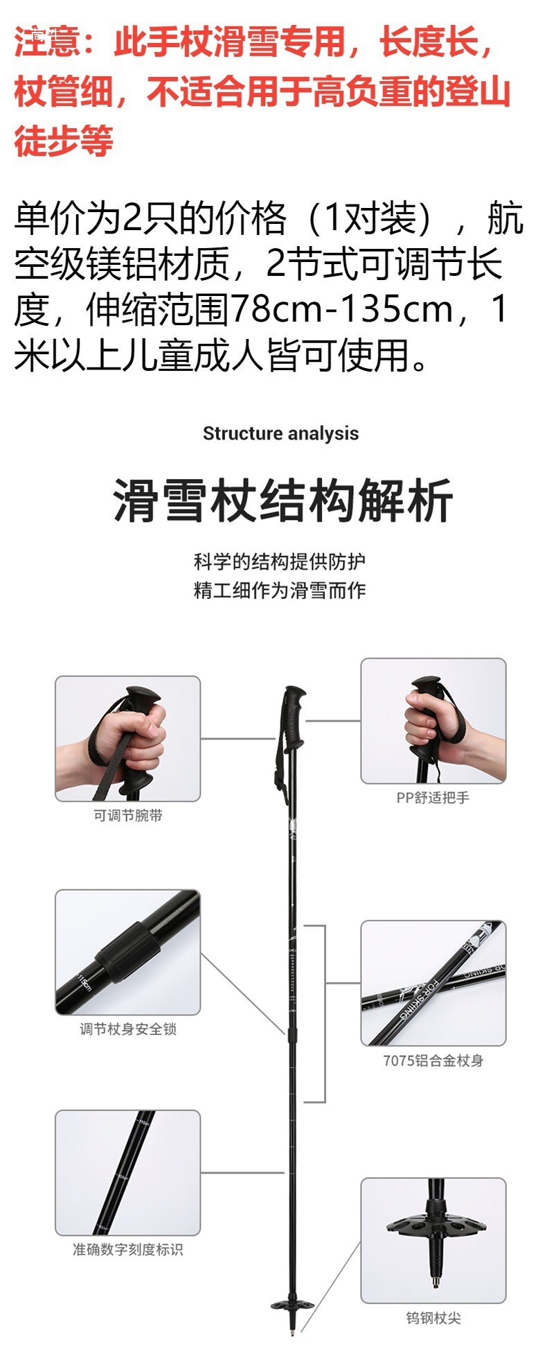 Двойные лыжные палки из алюминиево-магниевого сплава, регулируемые, легкие для взрослых и детей
