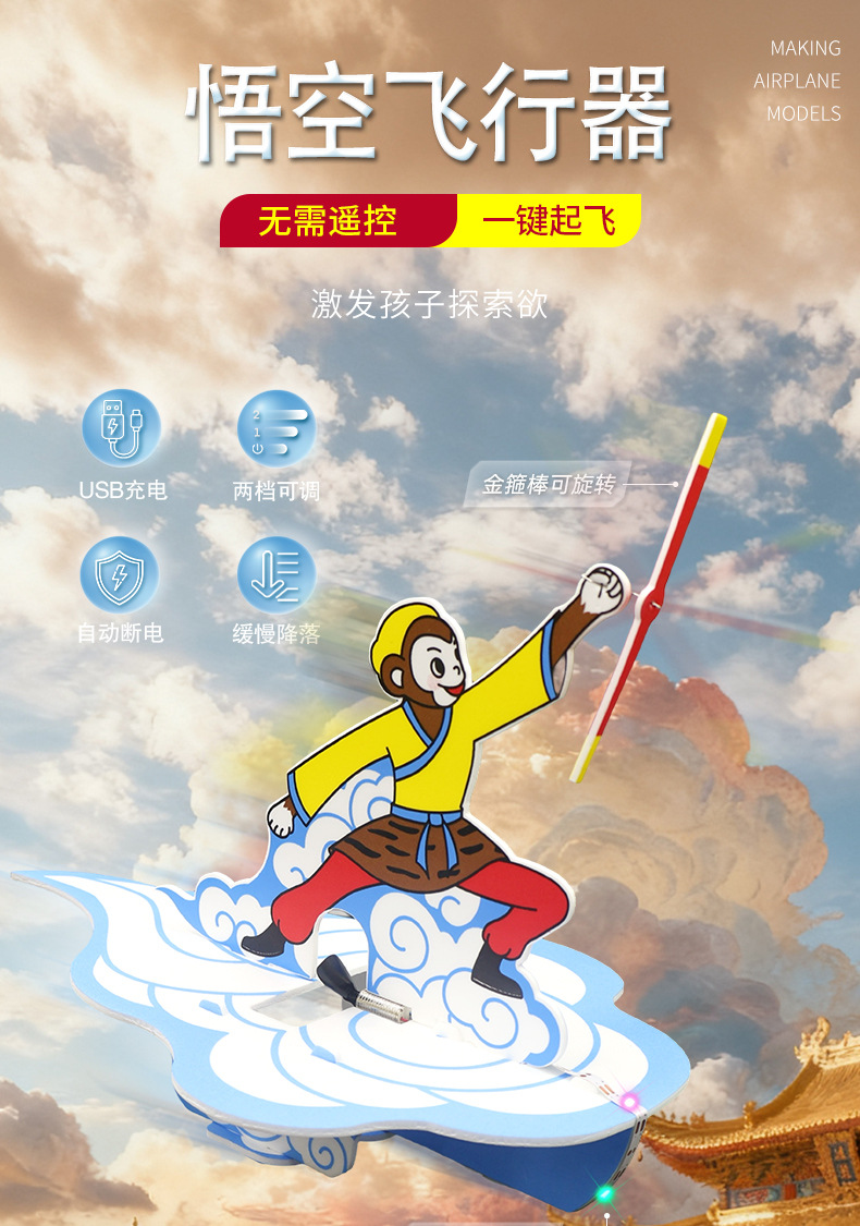 Детский электрический самолет Wukong для сборки, модель из пенопласта, игрушка с зарядкой, глайдер для вылета на улице