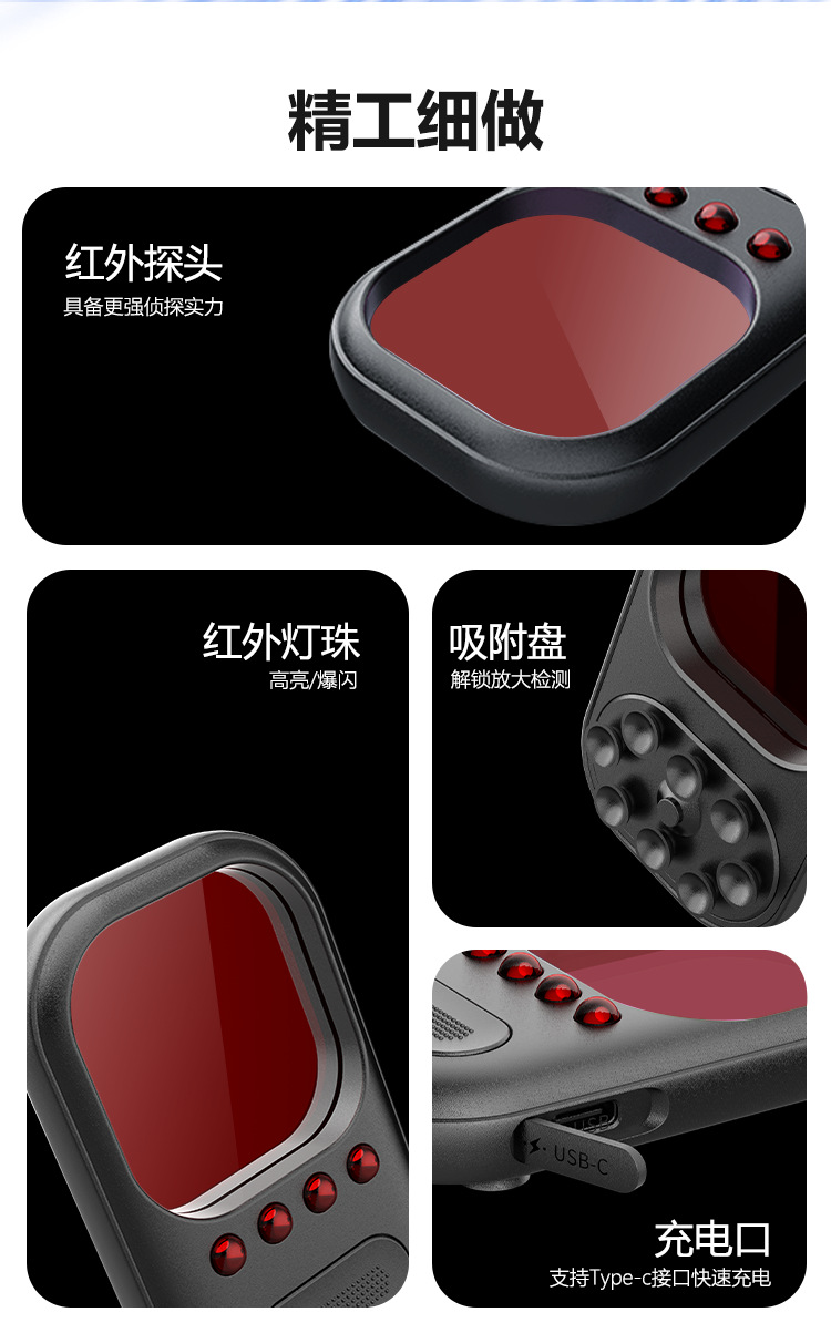 Портативный антишпионский инфракрасный детектор, детектор записи, с присоской, мобильный телефон, большой объектив