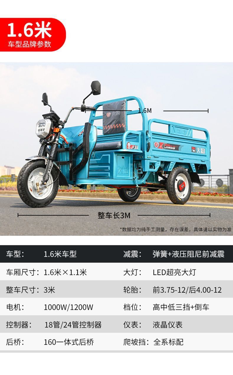 Новый электрический трицикл для груза, тяжелый грузовик, для горной местности, утолщенный сельскохозяйственный аккумуляторный транспорт, Amazon