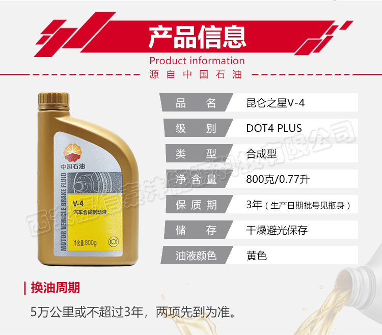 Тормозное масло China Petroleum Kunlun V4 Hzy4, синтетическая тормозная жидкость Dot4, автомобильное сцепление 800g