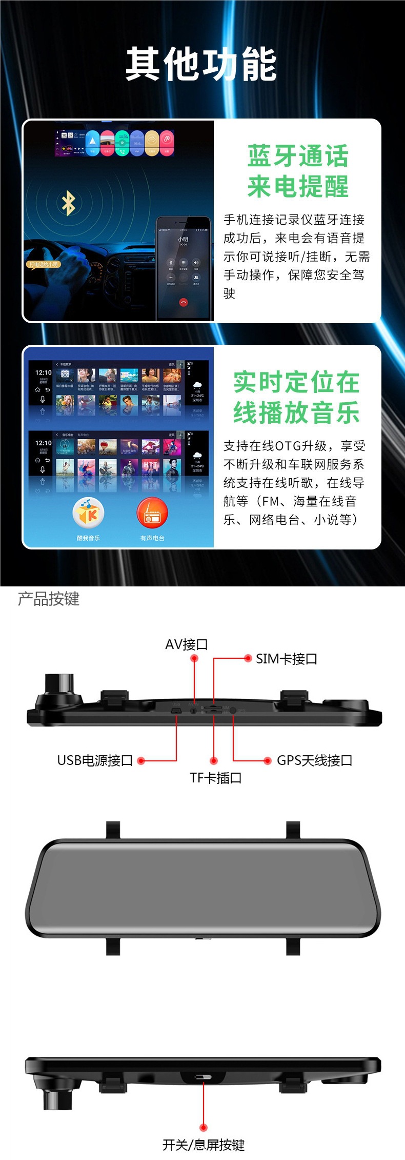 Полноэкранное умное облачное зеркало, 4G стриминг, навигация, видеорегистратор, фронтальные и задние камеры, реальное изображение заднего хода, дистанционное управление