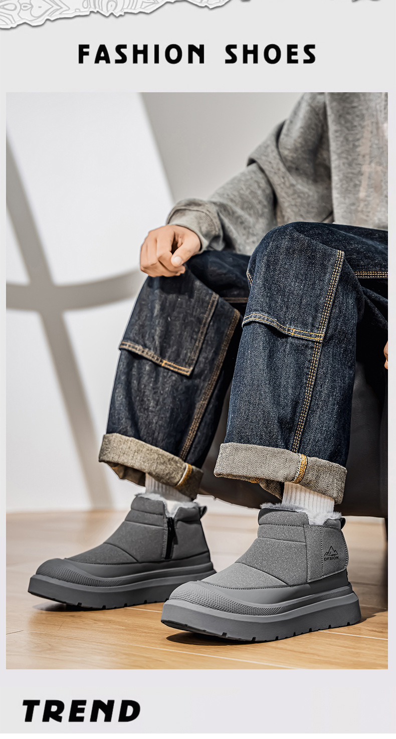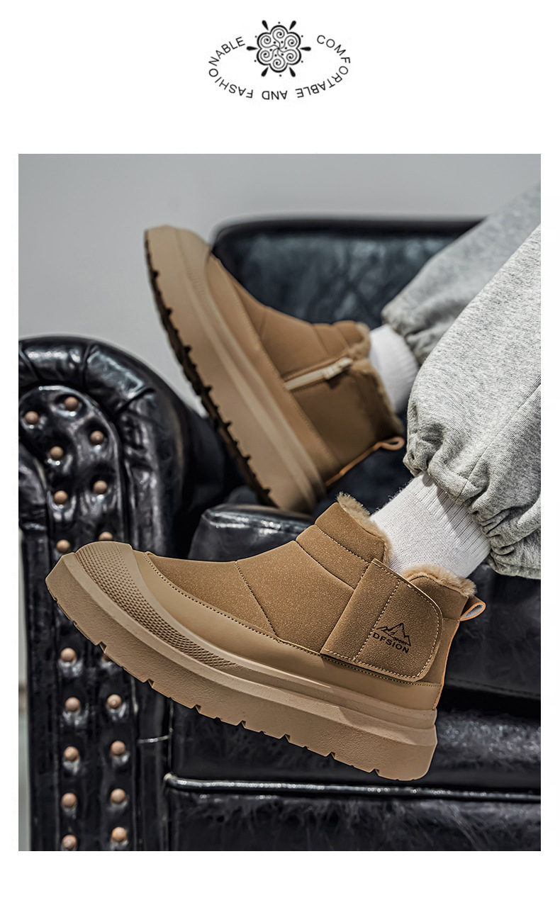 Мужская обувь 2025 Зима Новые водонепроницаемые снежные ботинки, теплые с флисовой подкладкой, утолщенные мужские хлопковые ботинки, высокие рабочие ботинки