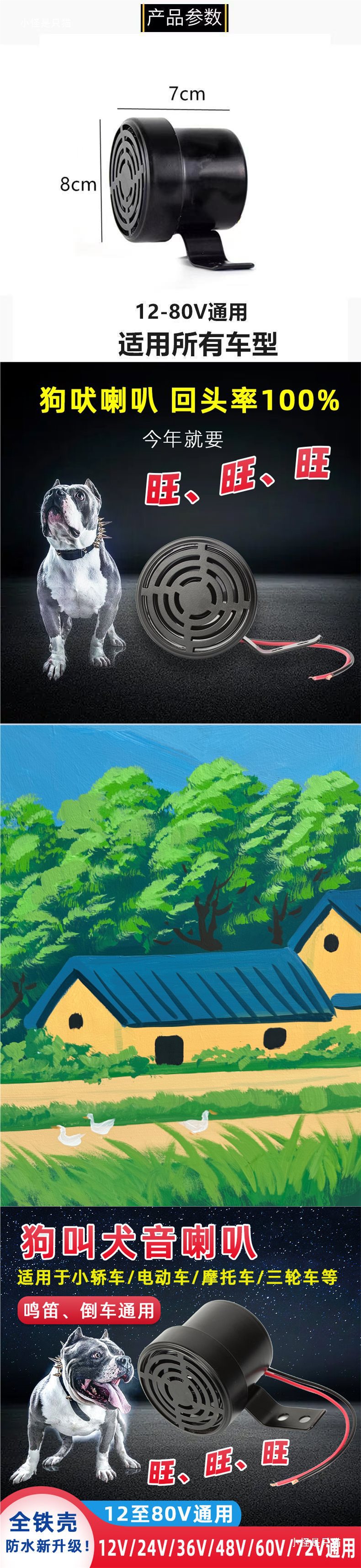 Сигнализация для автомобилей свисток собаки 12V-80V универсальный звук лая собаки для мотоцикла и батарейного автомобиля
