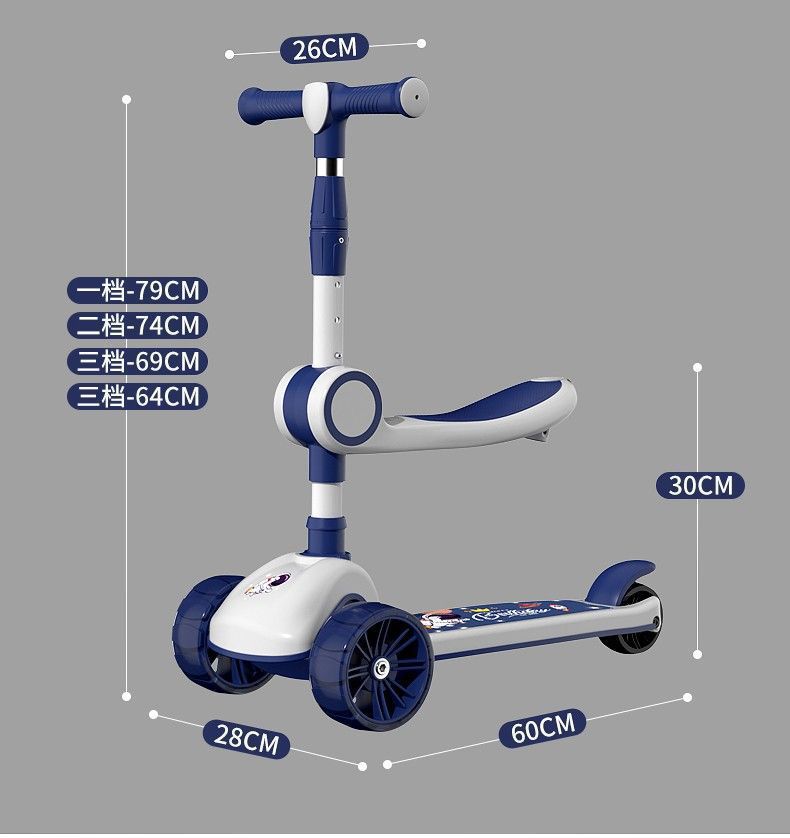 Складной самокат для детей, многоскоростной, регулируемый, с бесшумными колесами и широким педалем
