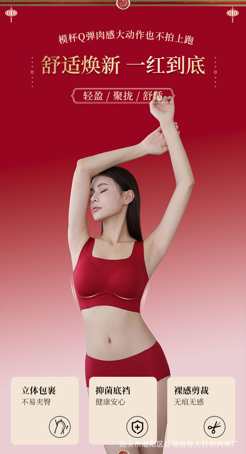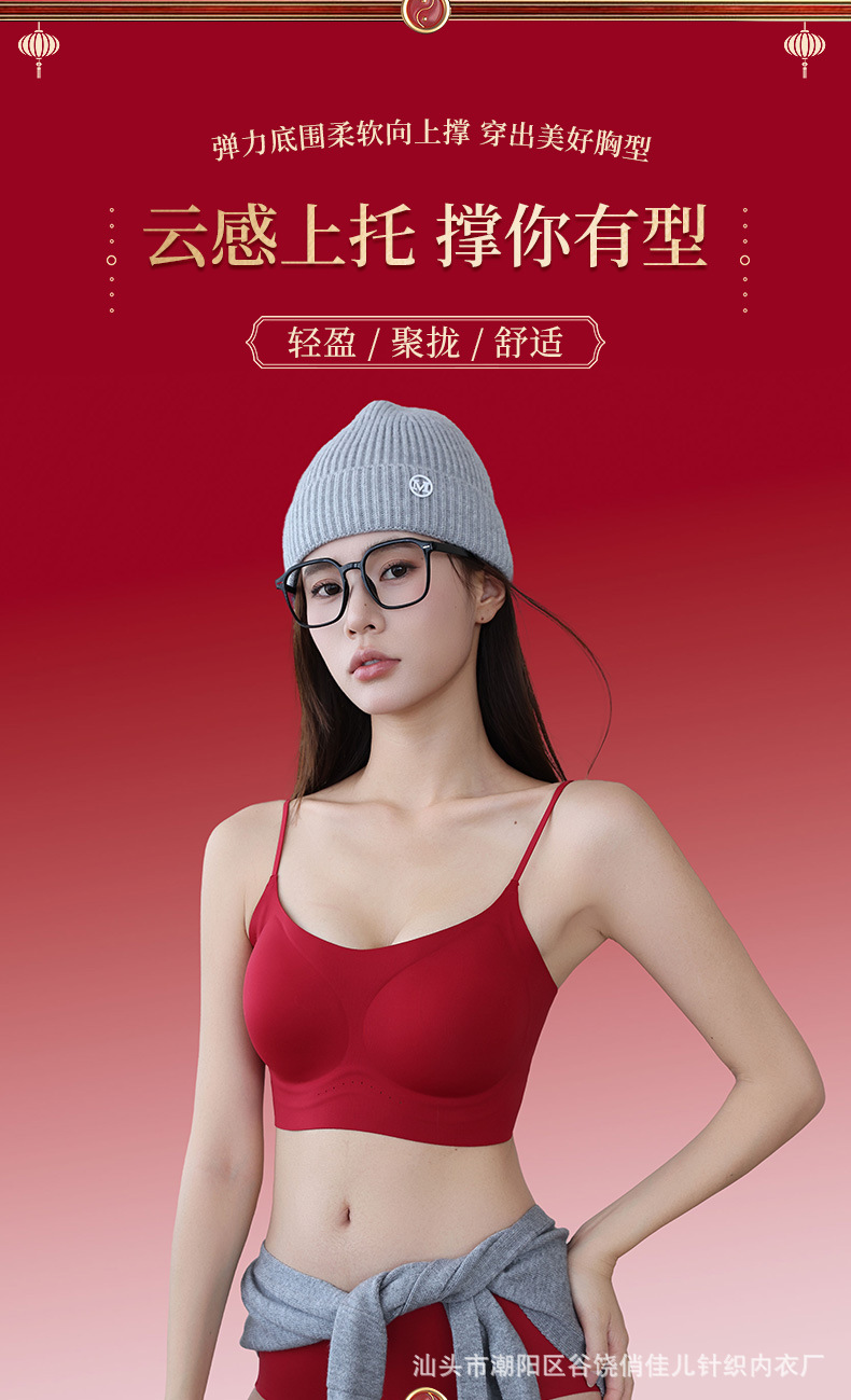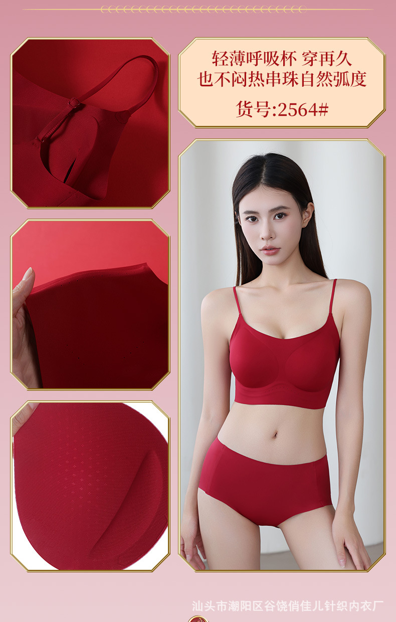Комплект бесшовного бра красного цвета для невест, подчеркивающий маленькую грудь, на удачу