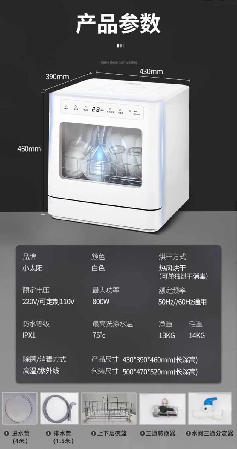 Посудомоечная машина без установки, бытовая, компактная, полностью автоматическая, мощная дезинфекция, все в одном