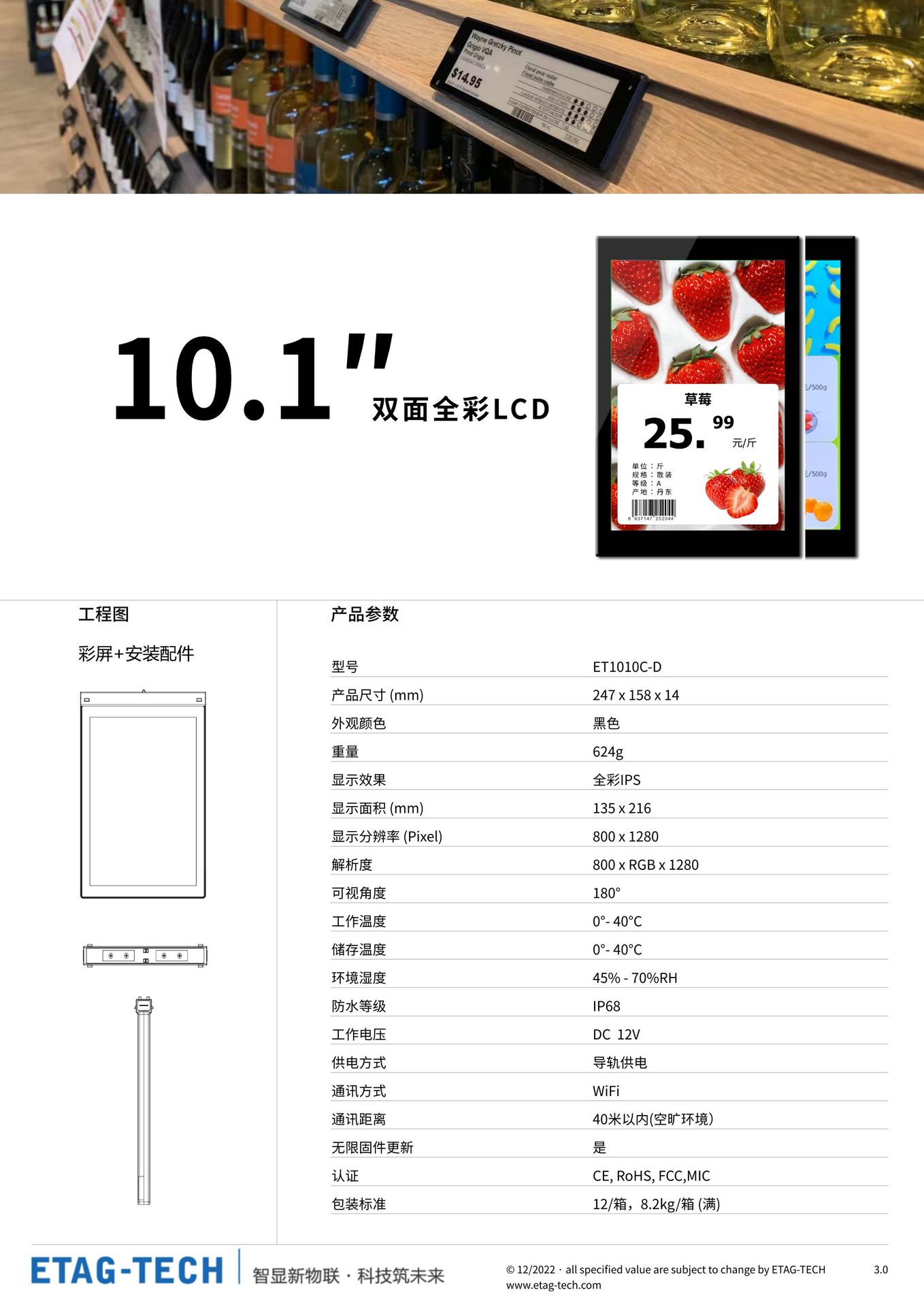 10.1 Цифровая этикетка Сетевой вариант Чернильный экран Цифровая ценник Полка Умная этикетка Супермаркет Черно-белый ценник