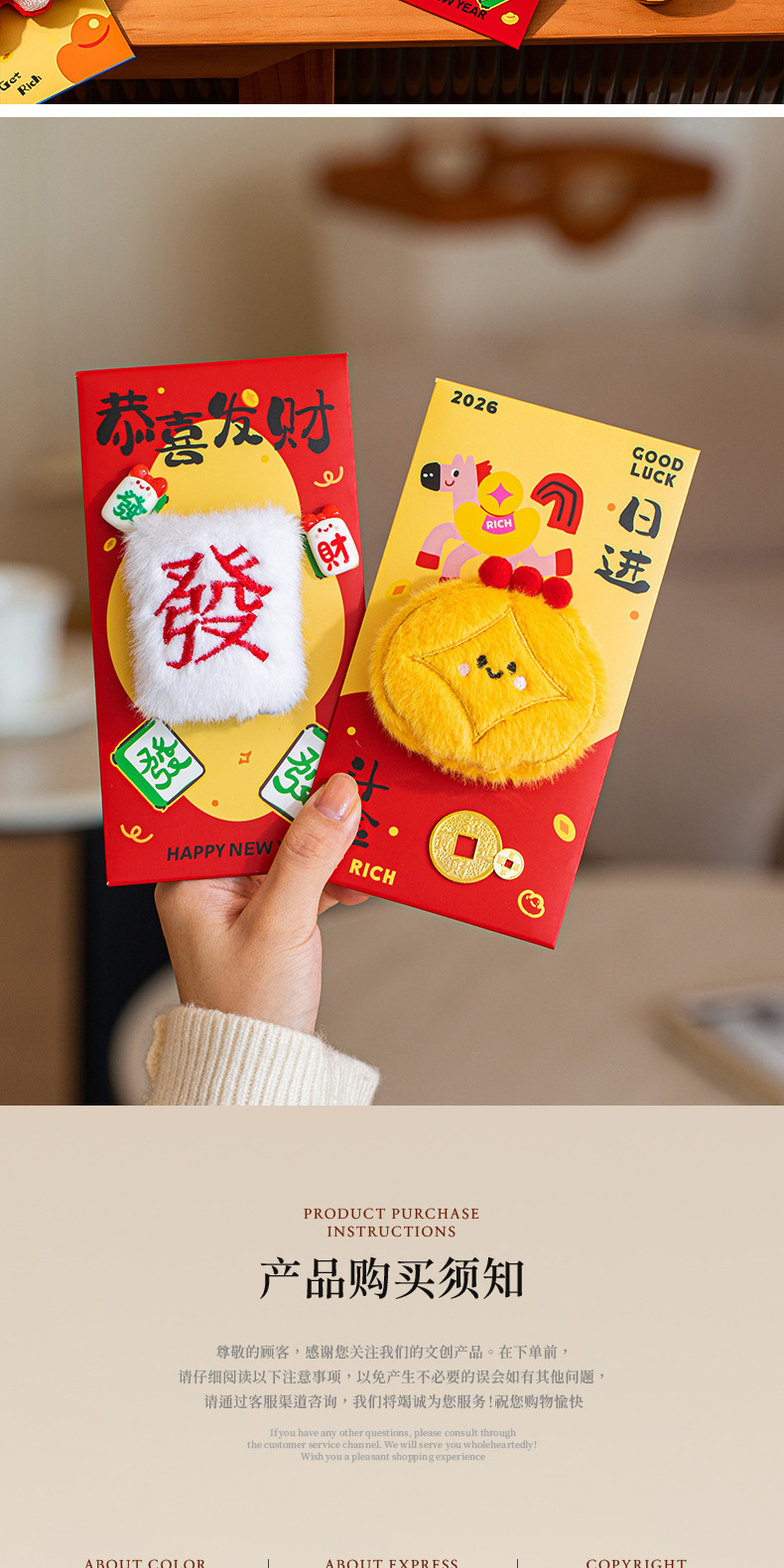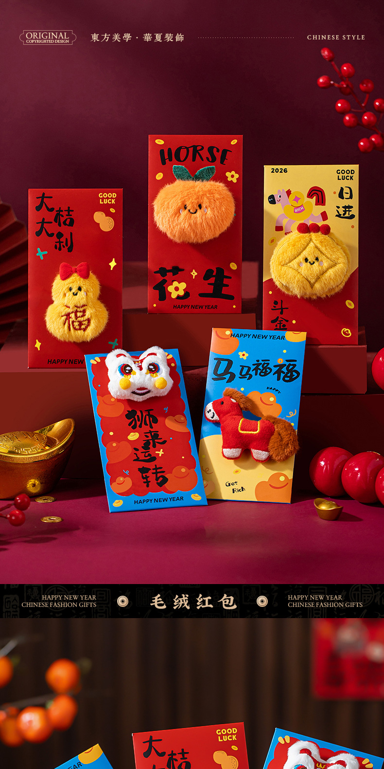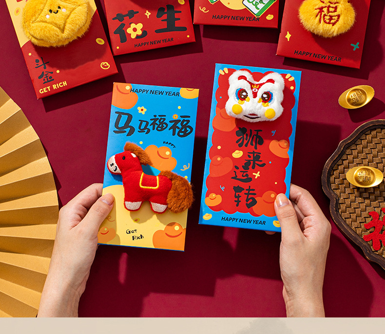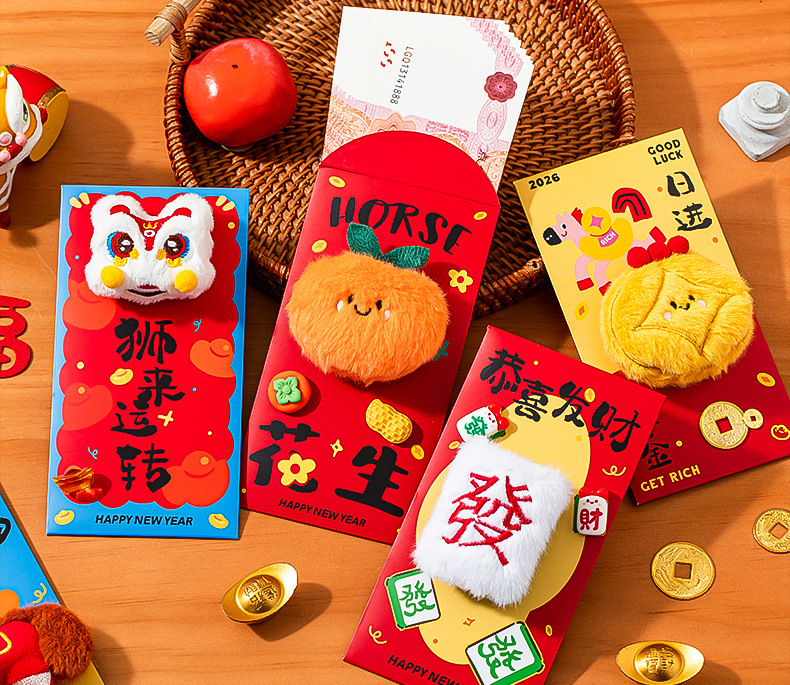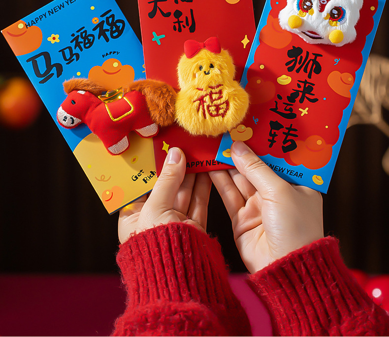 Милый плюшевый красный конверт на Новый год 2026, универсальный мультяшный креативный конверт для денег на весенний фестиваль