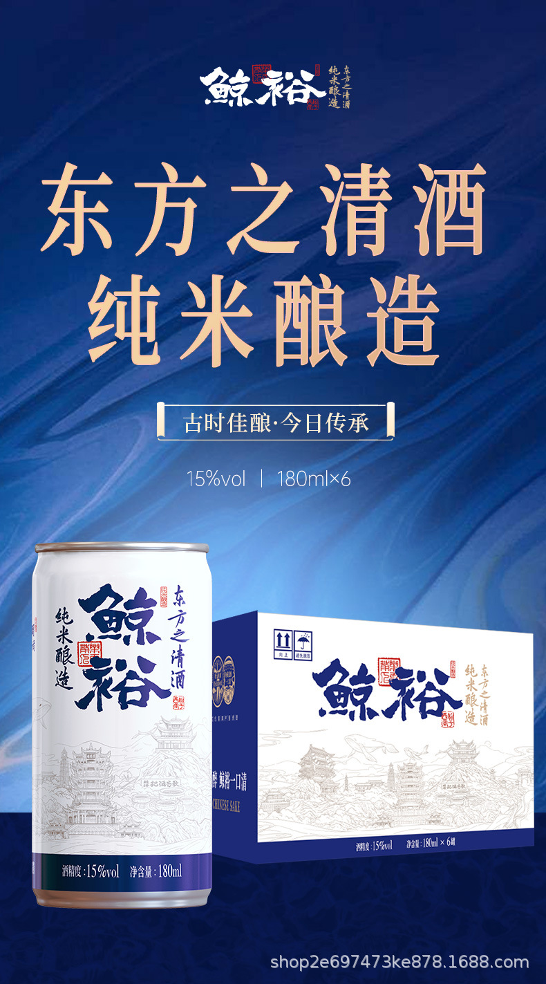 Домашнее саке Jingyu 180ml*6 банок 15 градусов, чистый зерновой, низкоалкогольное домашнее саке, освежающий подарок