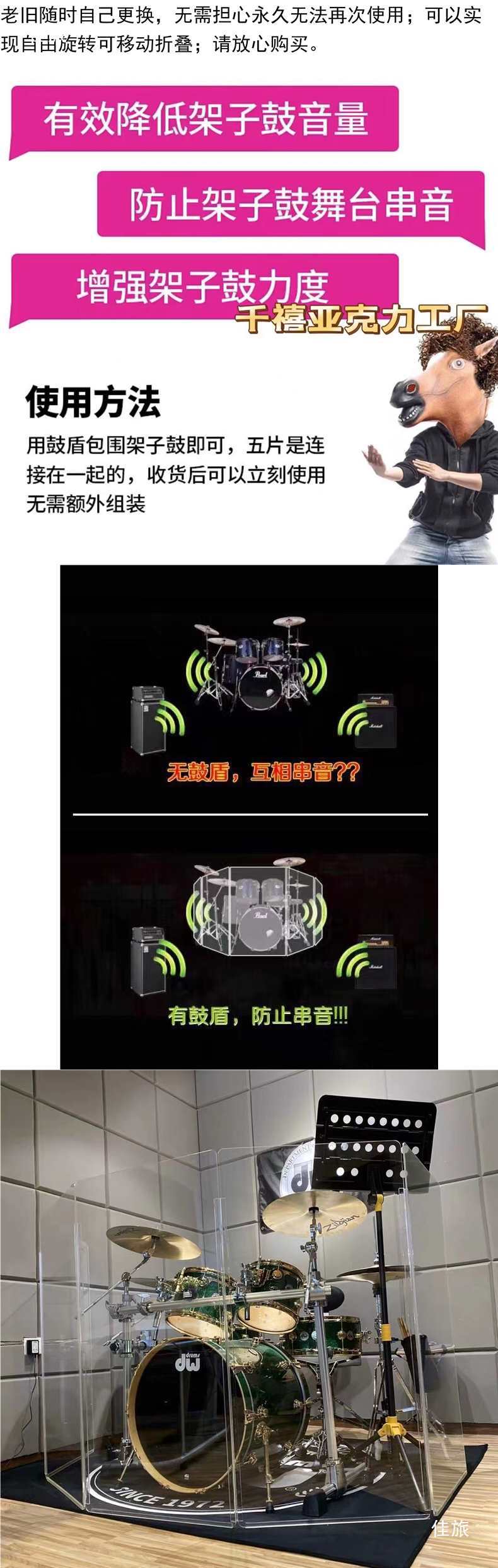 Акриловый щит для барабанов 24 дюйма круглый набор барабанов звукоизоляционная панель для предотвращения перекрестных помех в барабанной комнате