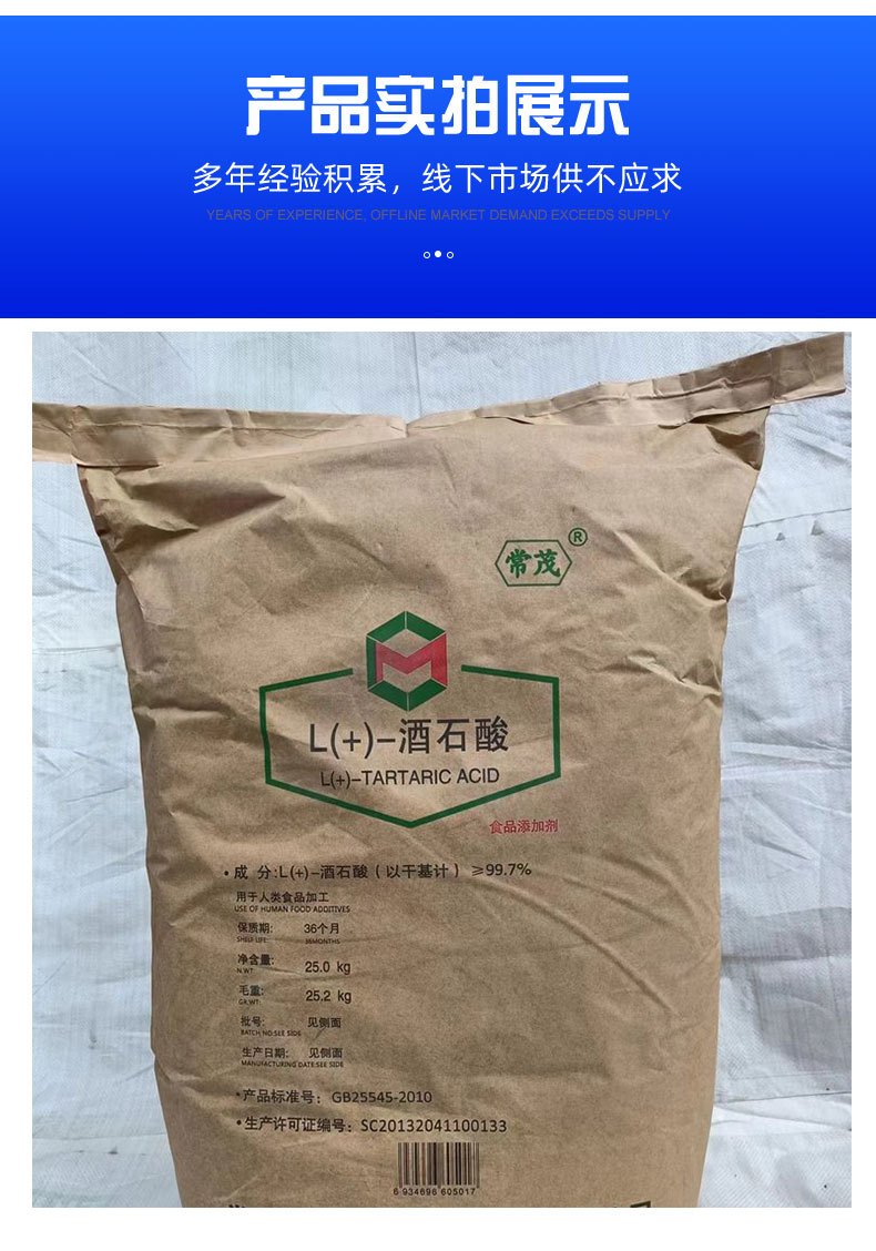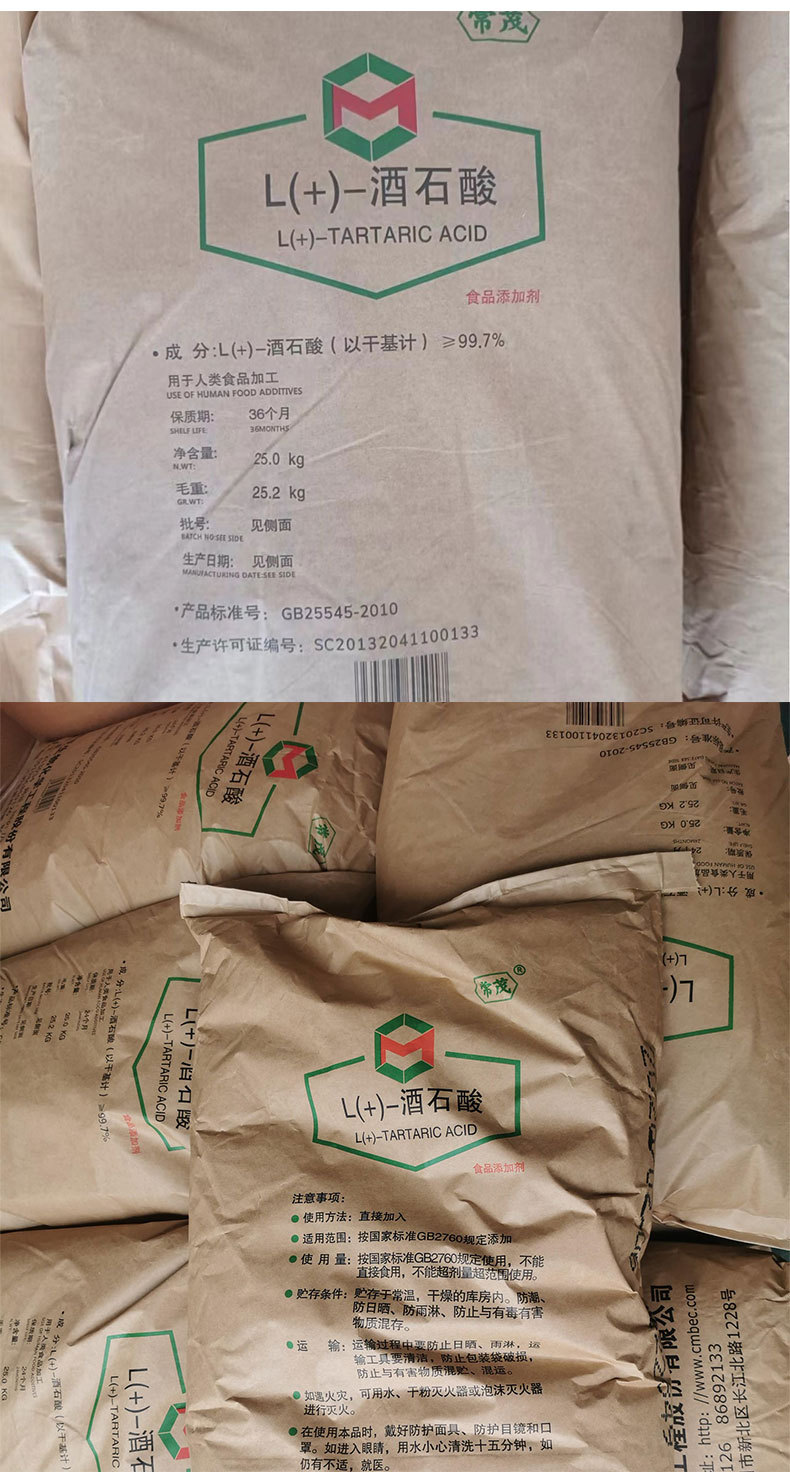 Поставка L+ винной кислоты пищевого качества, регулятор кислотности L-винной кислоты