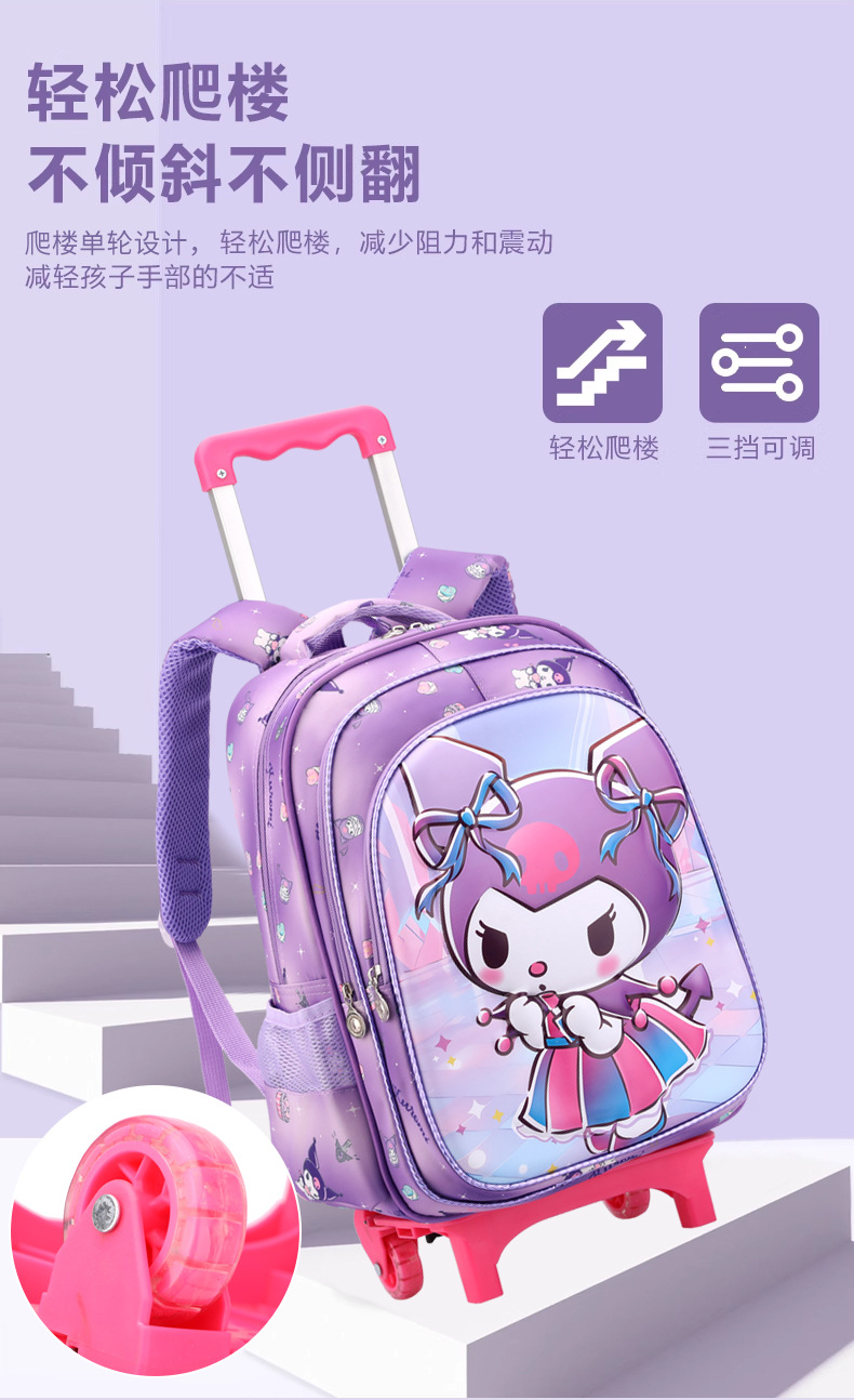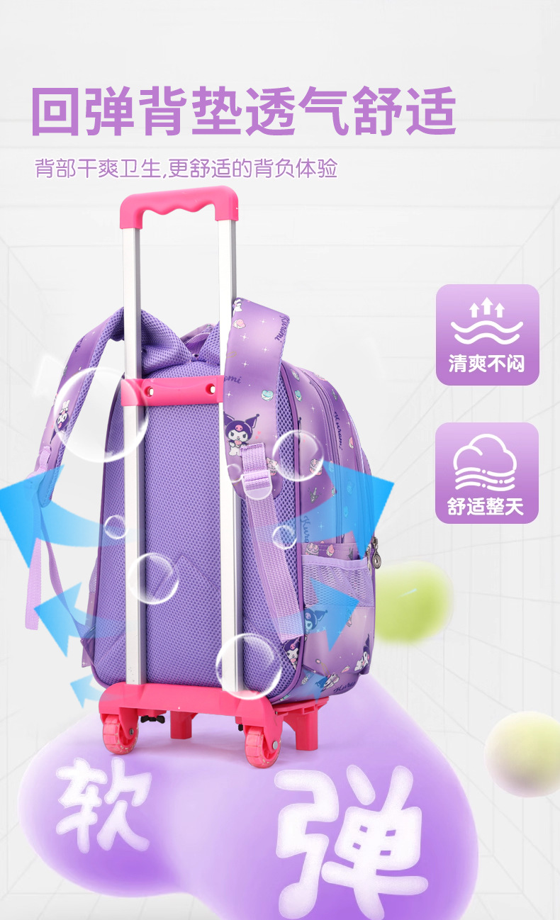 Новый рюкзак на колесах для учеников начальной школы 16 дюймов с принтом, 2-5 классы, мультфильм Kuromi