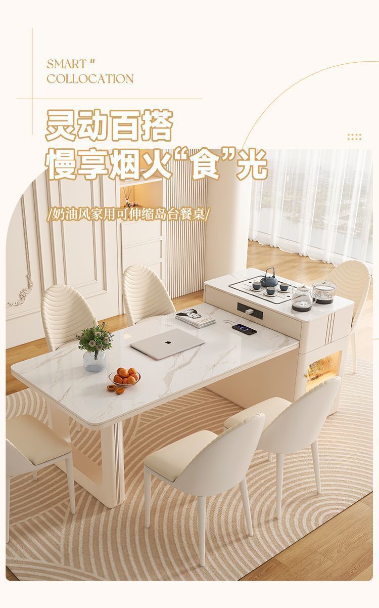 Чайный стол из сланца в кремовом стиле, раскладной, интегрированный обеденный стол для молодежи, многофункциональный