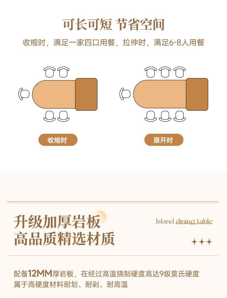 ![]() | Island table + table [fixed socket + electric tea stove] | 1.42- 1.7m [thickened 12mm rock slab] | ¥894.85 / ≈ 10 811 ₽ | 194 | 5974376792209 | |