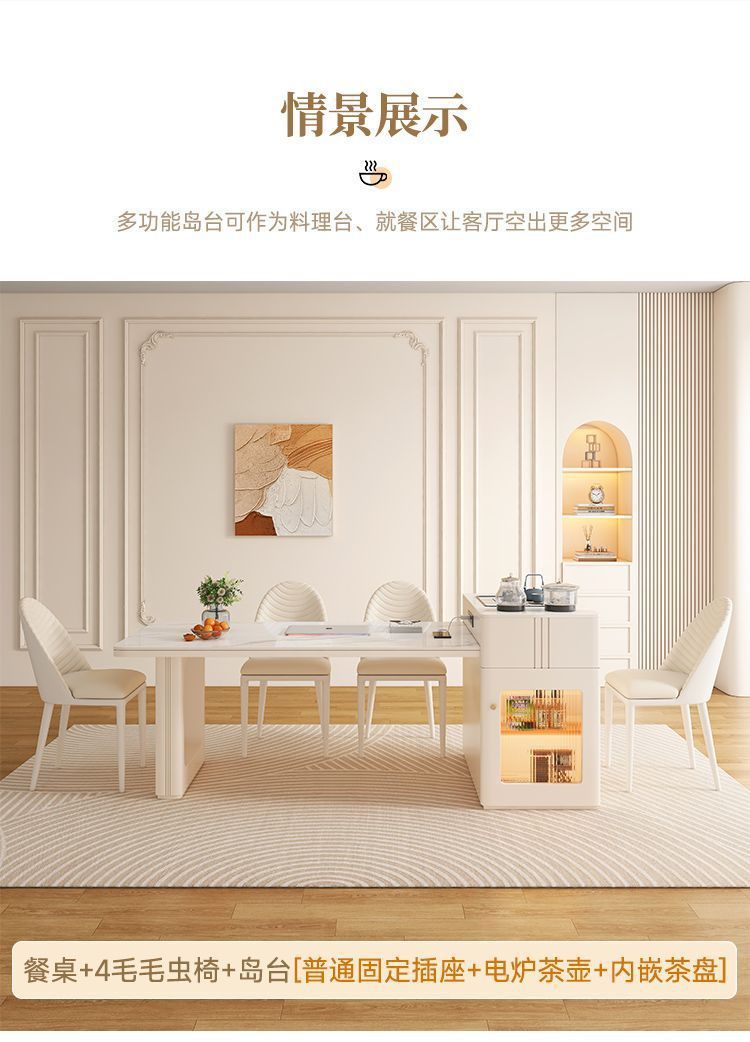 ![]() | Island table + table [fixed socket + electric tea stove + tea tray] 4 fluffy chairs | 1.42- 1.7m [thickened 12mm rock slab] | ¥1418.65 / ≈ 17 140 ₽ | 312 | 5974376792239 | |
