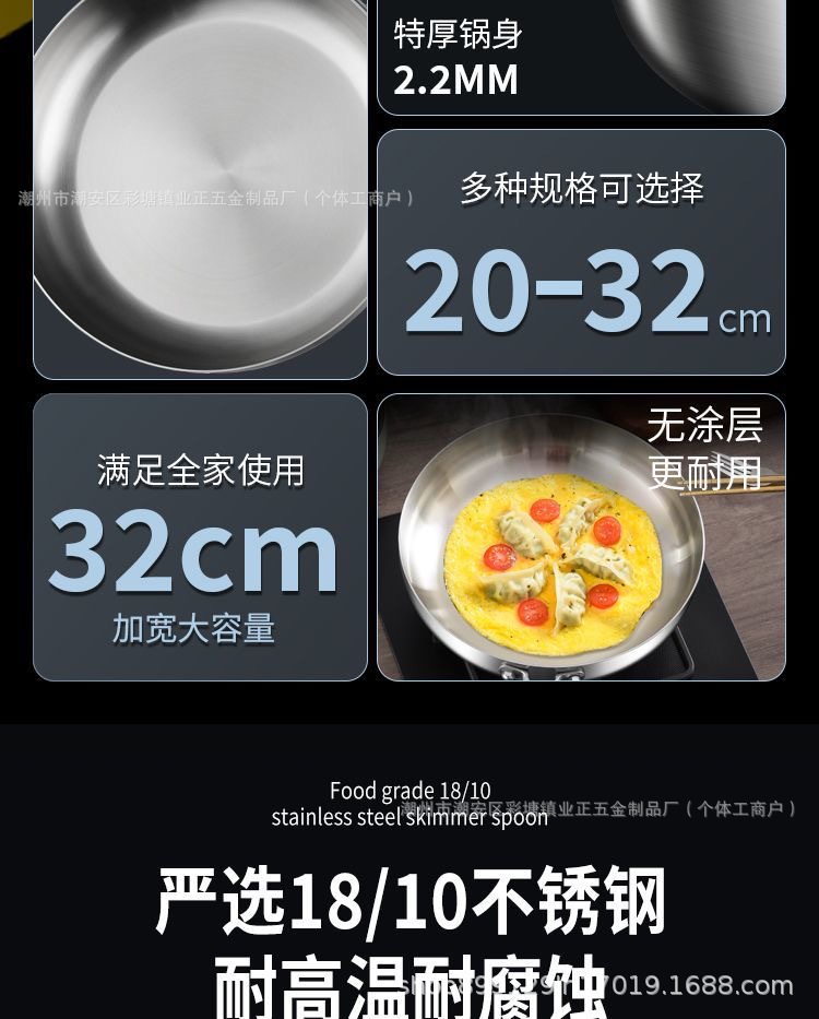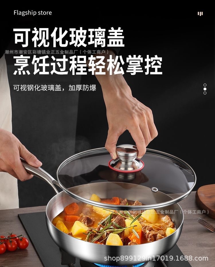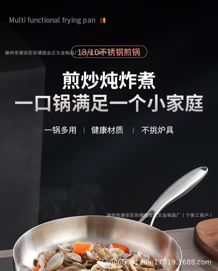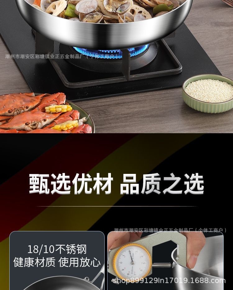 Кухонная кастрюля из нержавеющей стали 410, домашний вок, плоское дно, антипригарная кастрюля, для индукционной плиты и газовой плиты, специальная толстая сковорода